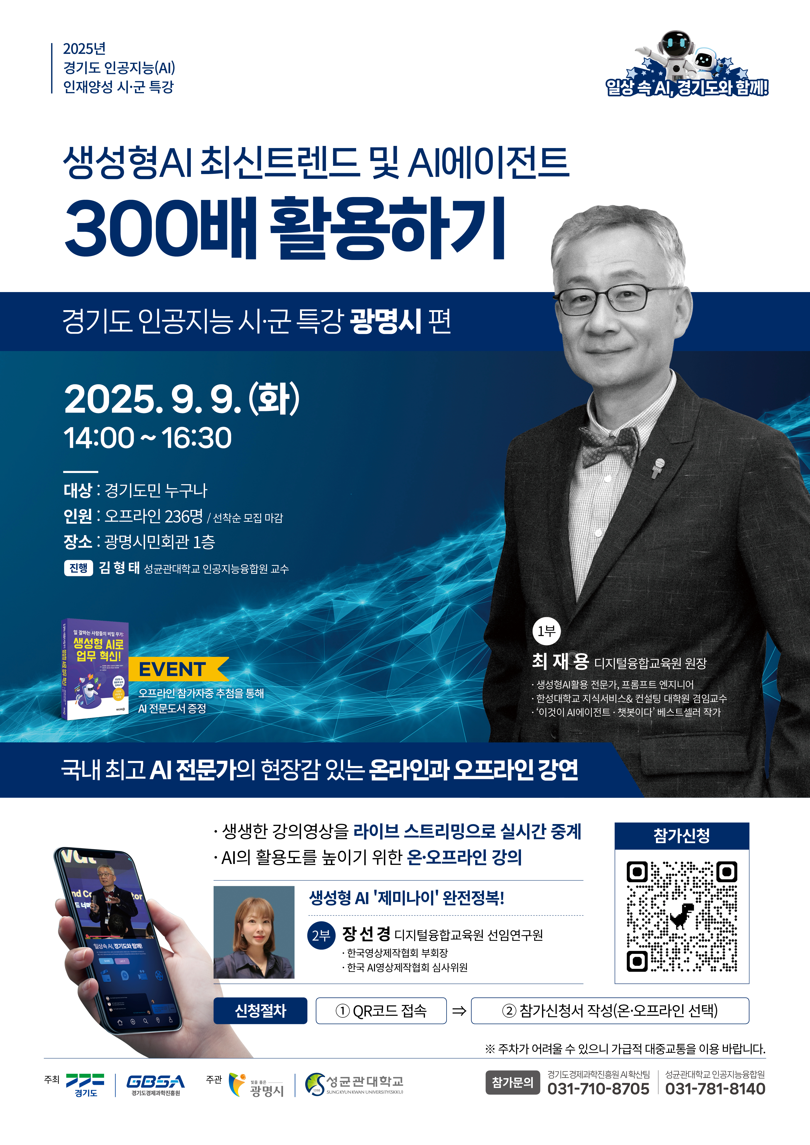 - 광명시 오프라인 현장강의는 장소 여건에 따라 최대 236명까지 가능하며 선착순 마감됩니다.