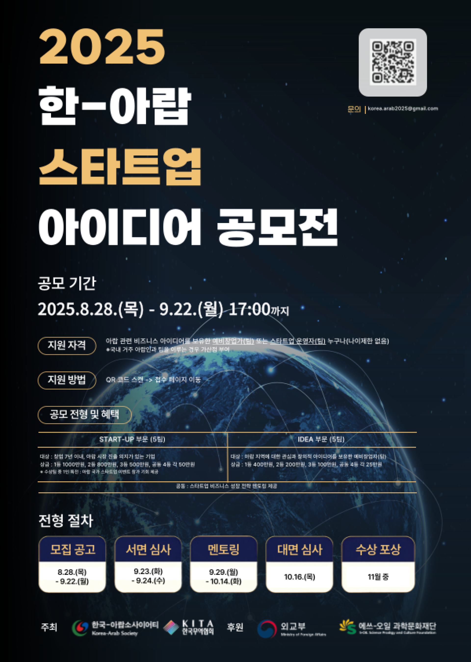 | 시상내역 | 총 상금 2,400만 원 / 아랍국가 스타트업 이벤트 참여 (스타트업 부문 기준) |