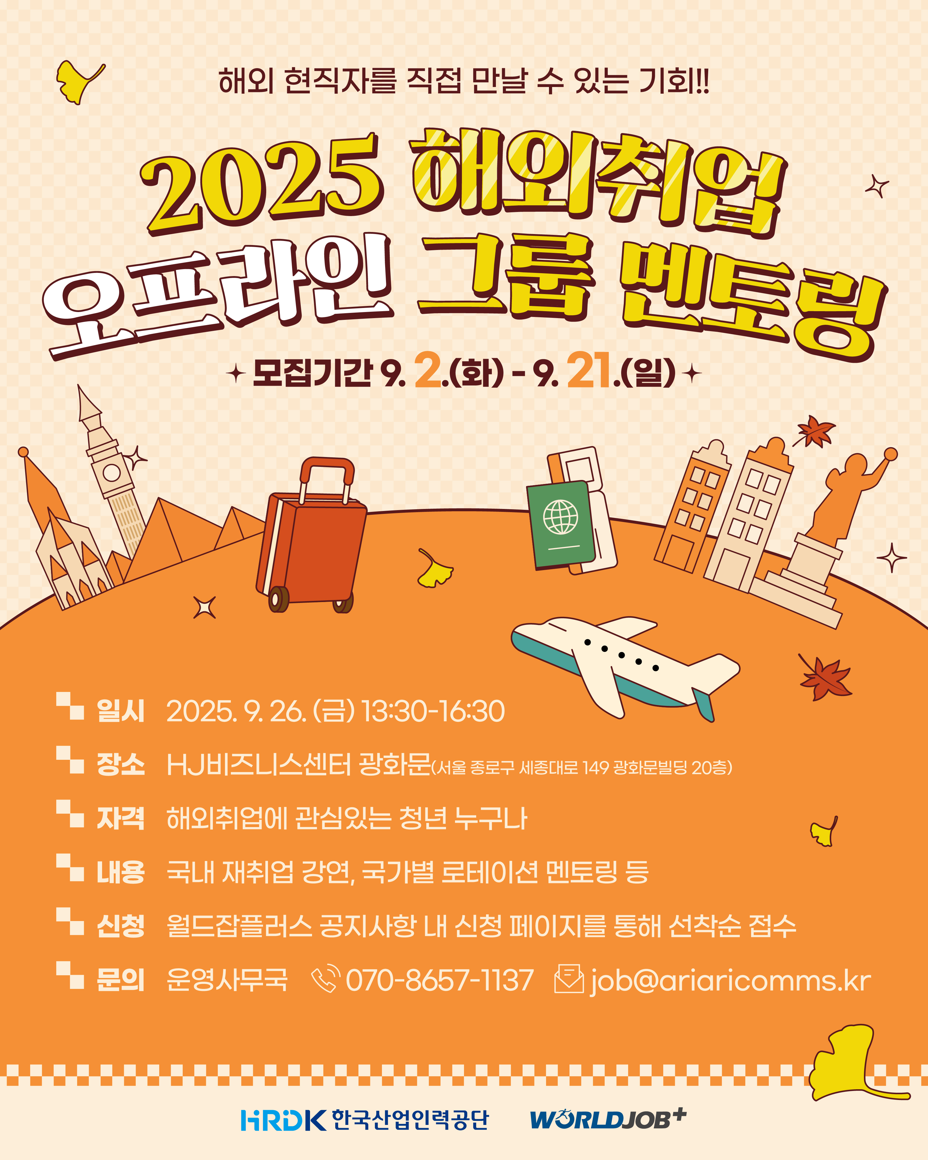 [한국산업인력공단] 청년 해외취업 대면 멘토링 모집 안내 : 일본, 미국, 싱가포르, 독일, 베트남, 호주