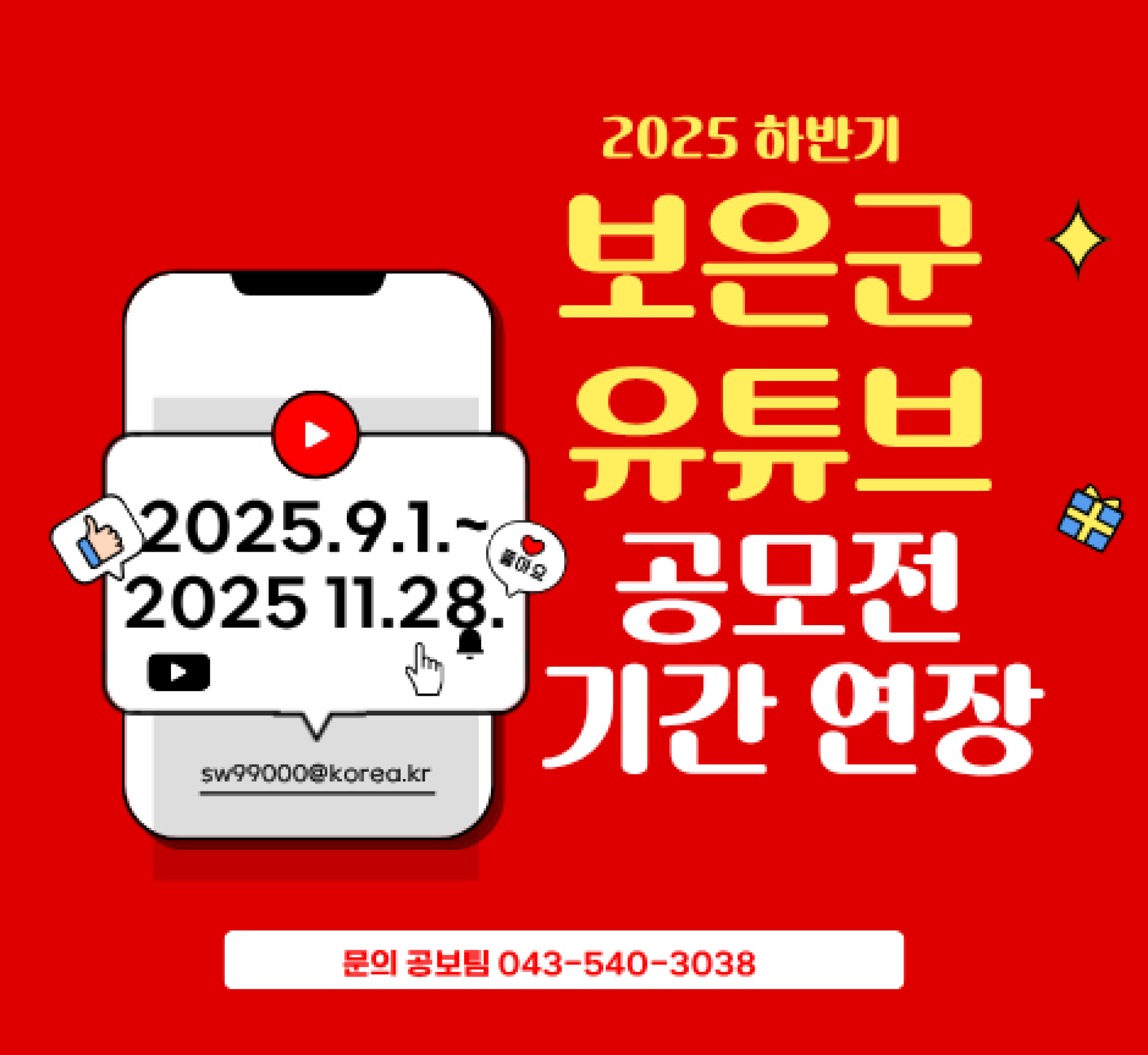 | 주최 | 2025 하반기 보은군 유튜브 영상 공모전 |