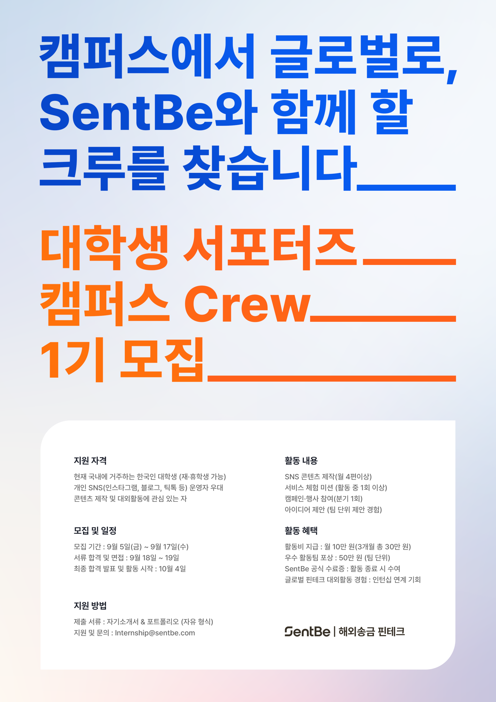 - 지원 : Internship@sentbe.com