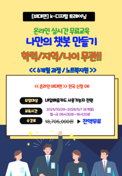 -[온라인/노트북지원] AI 나만의챗봇 만들기 비대면 동아일보AILAB KDT참여자를 모집합니다.