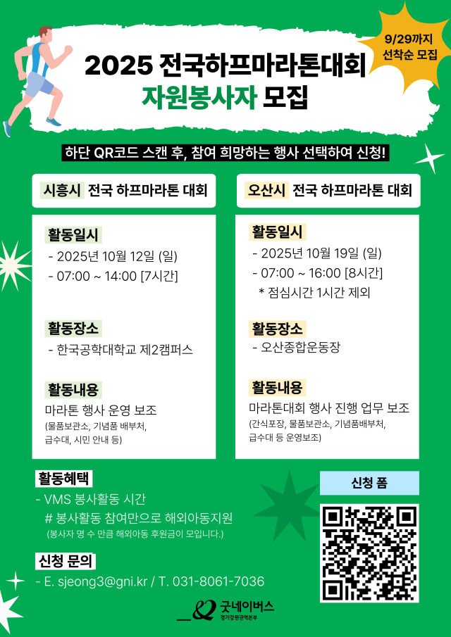 [굿네이버스] 2025 시흥시/오산시 전국하프마라톤대회 행사지원 봉사자모집 (대외봉사활동)