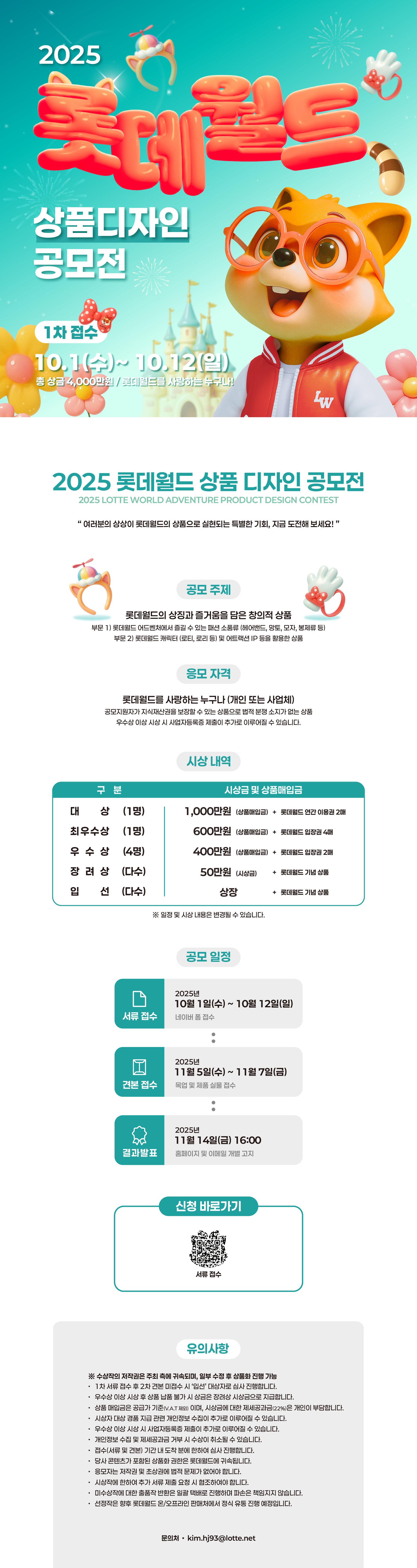 | 시상내역 | 대상(1명) 1,000만원 (상품매입금) + 롯데월드 연간 이용권 2매 外 |