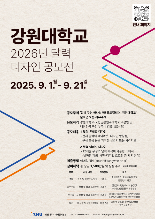 「2026년 강원대학교 달력 디자인 공모전」을 개최합니다.