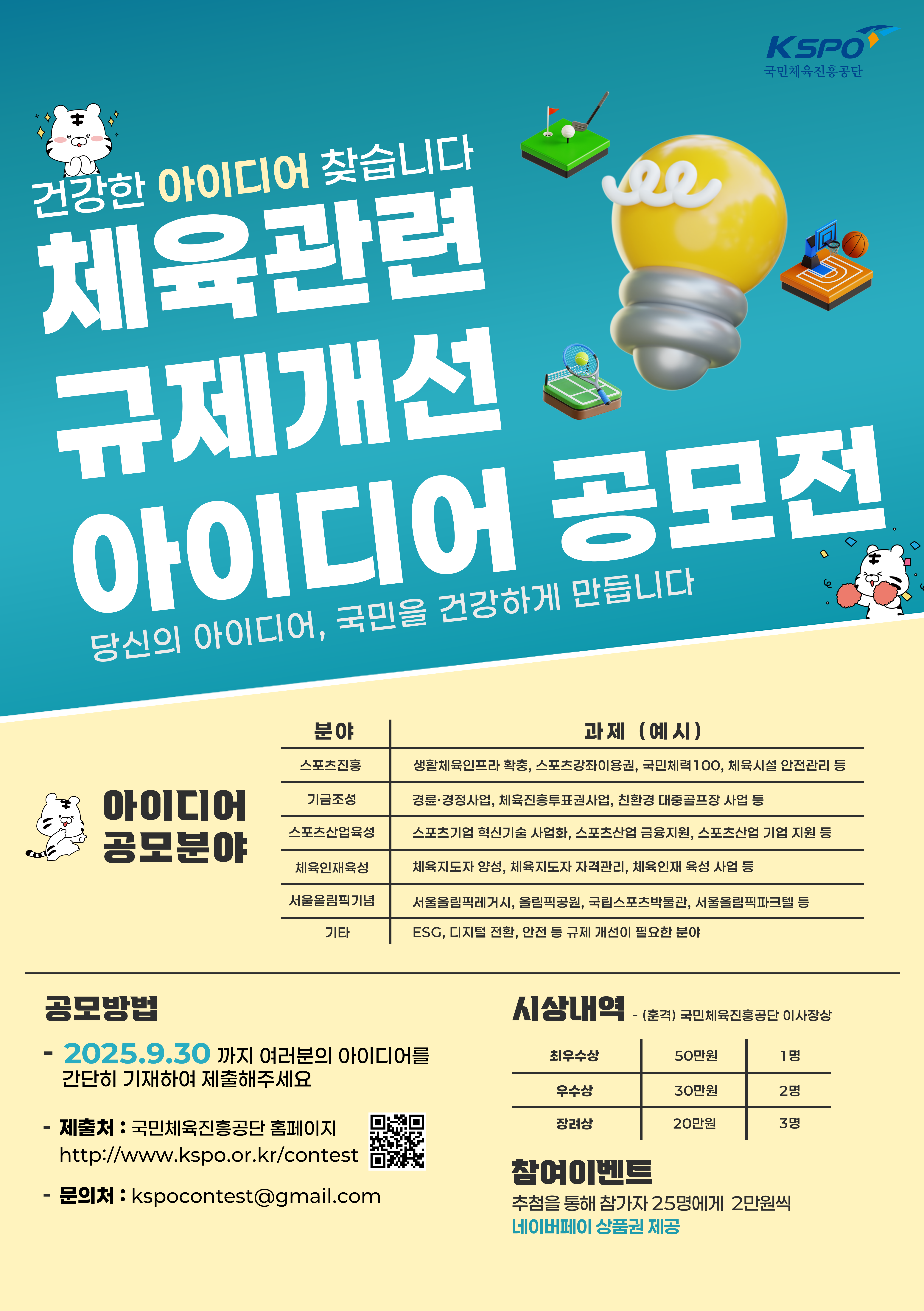 - www.kspo.or.kr/contest 에서 온라인 접수