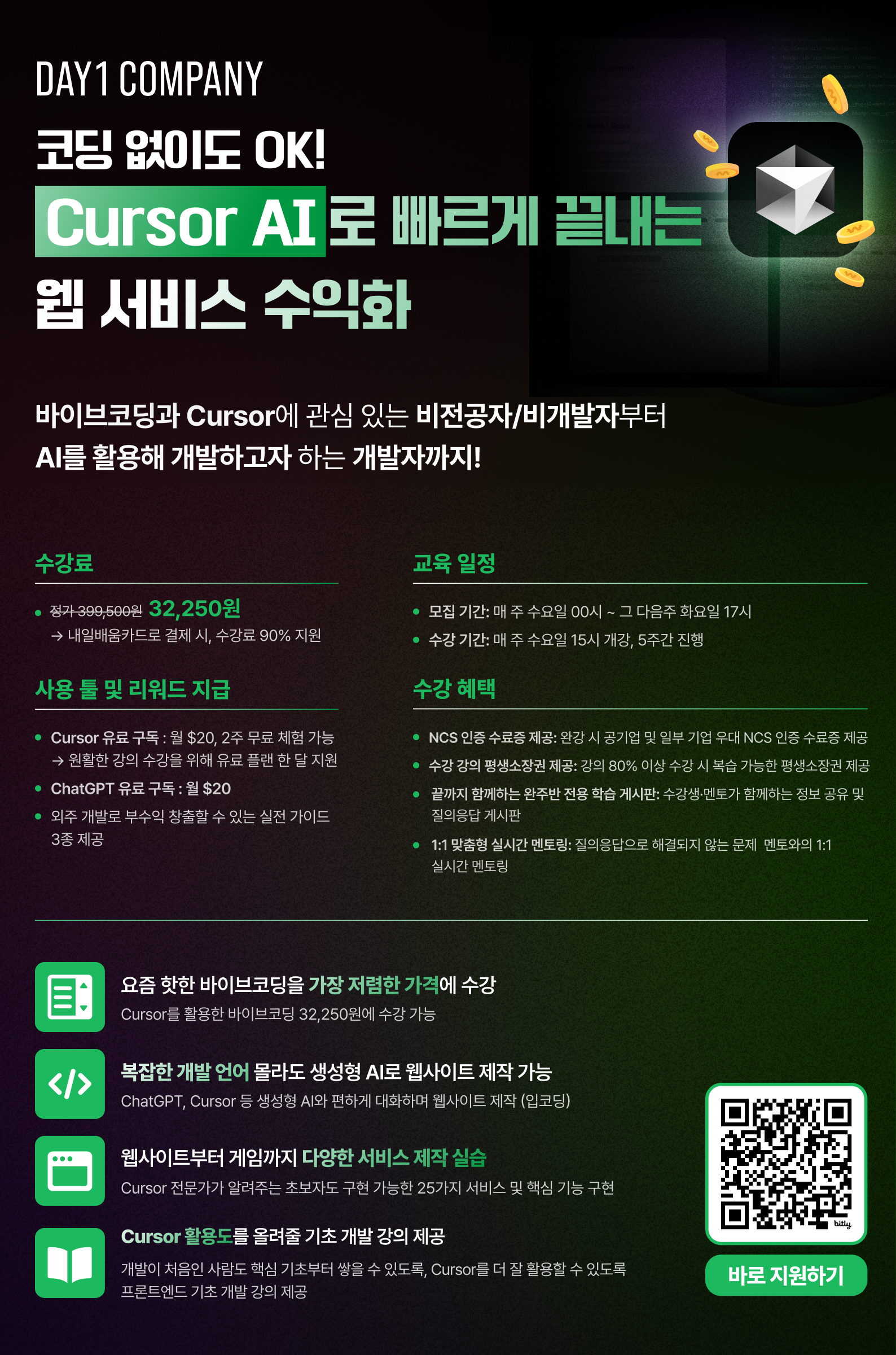 🤖[데이원컴퍼니 국비지원] 코딩 몰라도 OK! Cursor AI로 빠르게 웹 서비스 수익화!