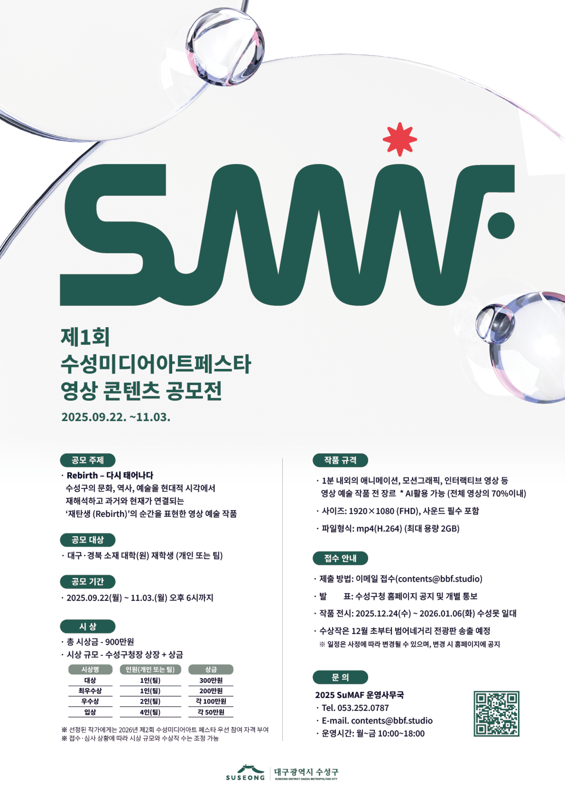 - ④ 수상자는 2026년 제2회 수성미디어아트 페스타 우선 참여자격 부여