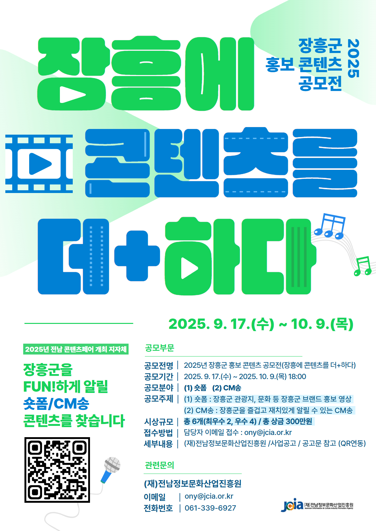 2025년 장흥군 홍보 콘텐츠 공모전(장흥에 콘텐츠를 더+하다)