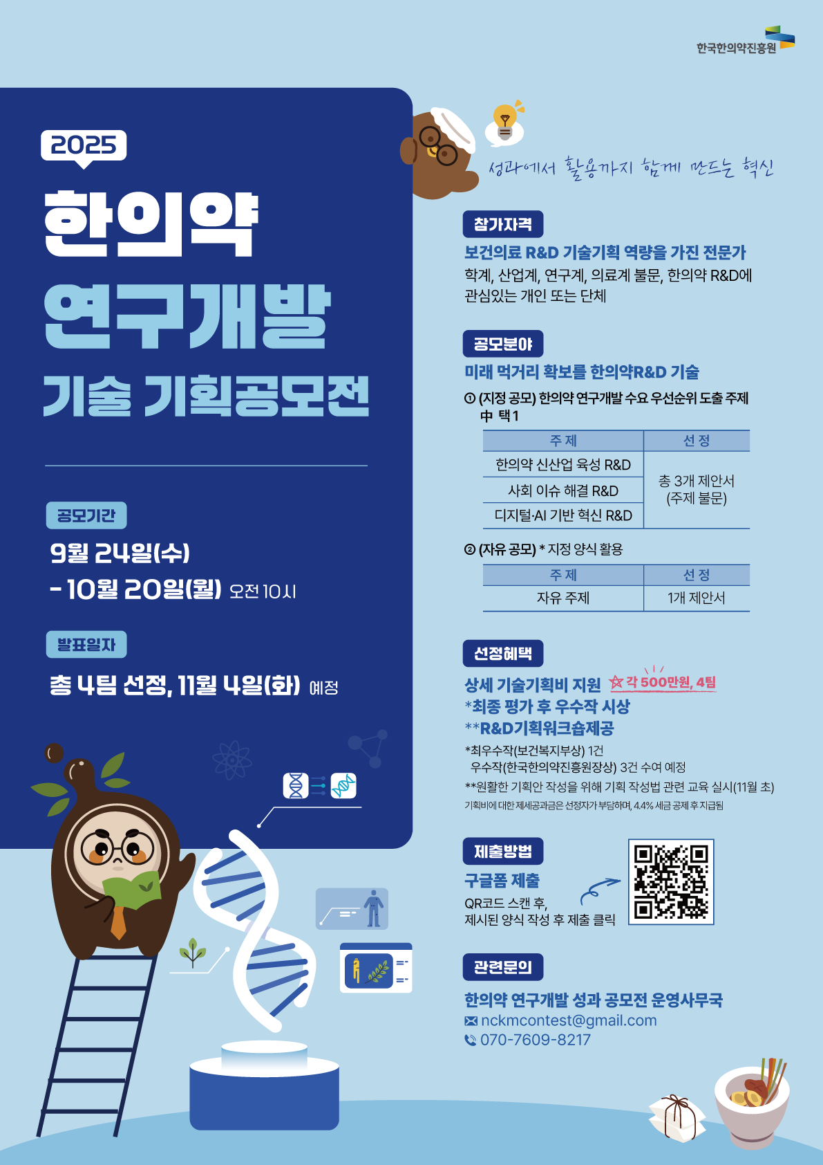 - 문의 전화번호: 한국한의약진흥원 공모전 운영지원팀 (☎070-7609-8217)