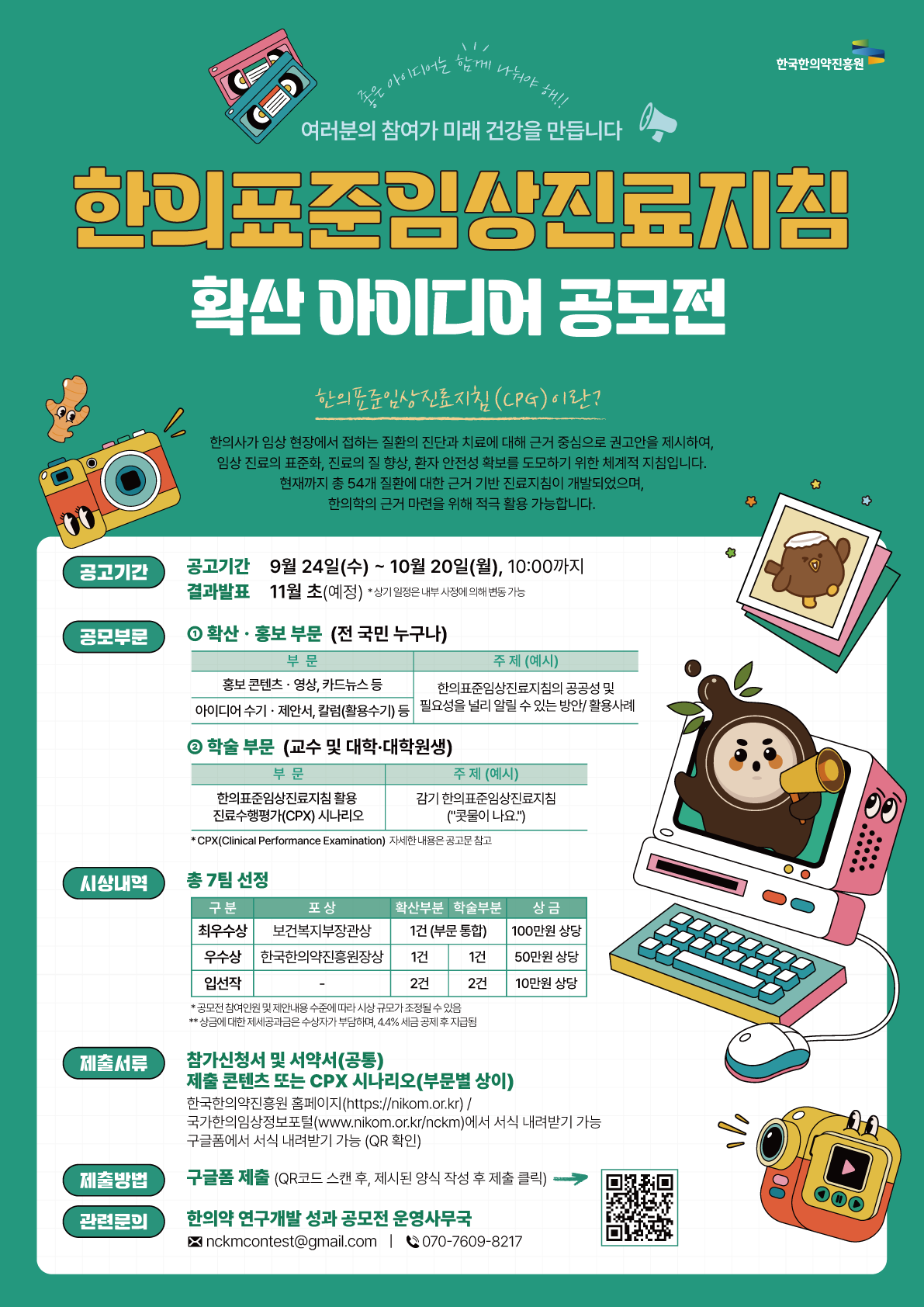 - 문의 전화번호: 한국한의약진흥원 공모전 운영지원팀 (☎070-7609-8217)
