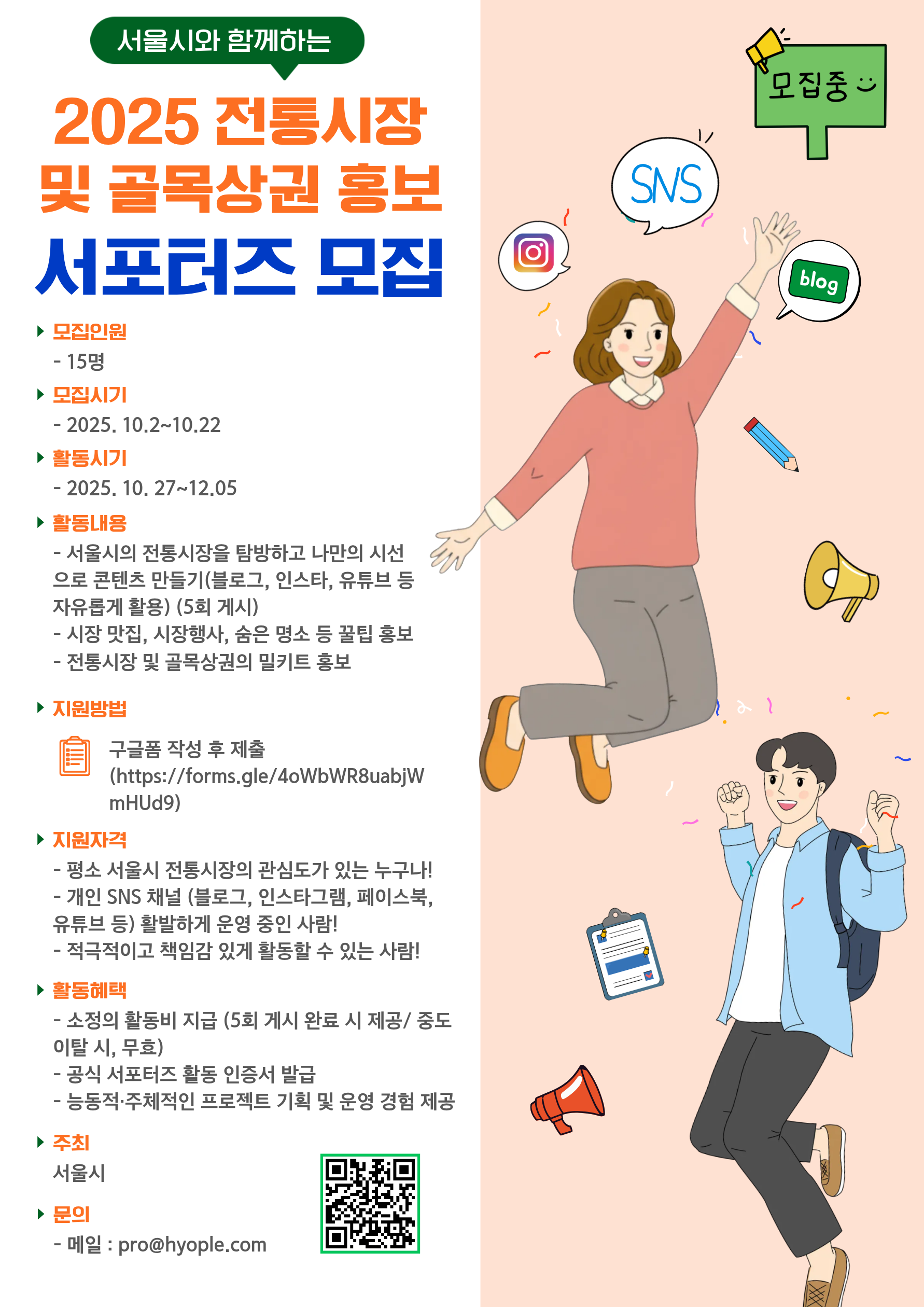 서울시 전통시장 및 골목상권 홍보 서포터즈 모집