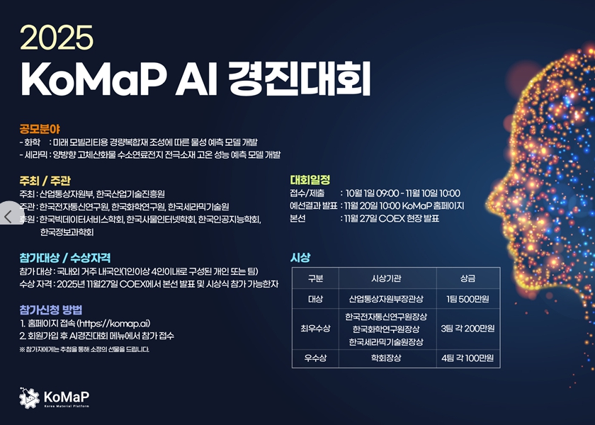 - 소재데이터를 활용하는 디지털데이터플랫폼(KoMaP)기반 AI 모델 개발 경진대회