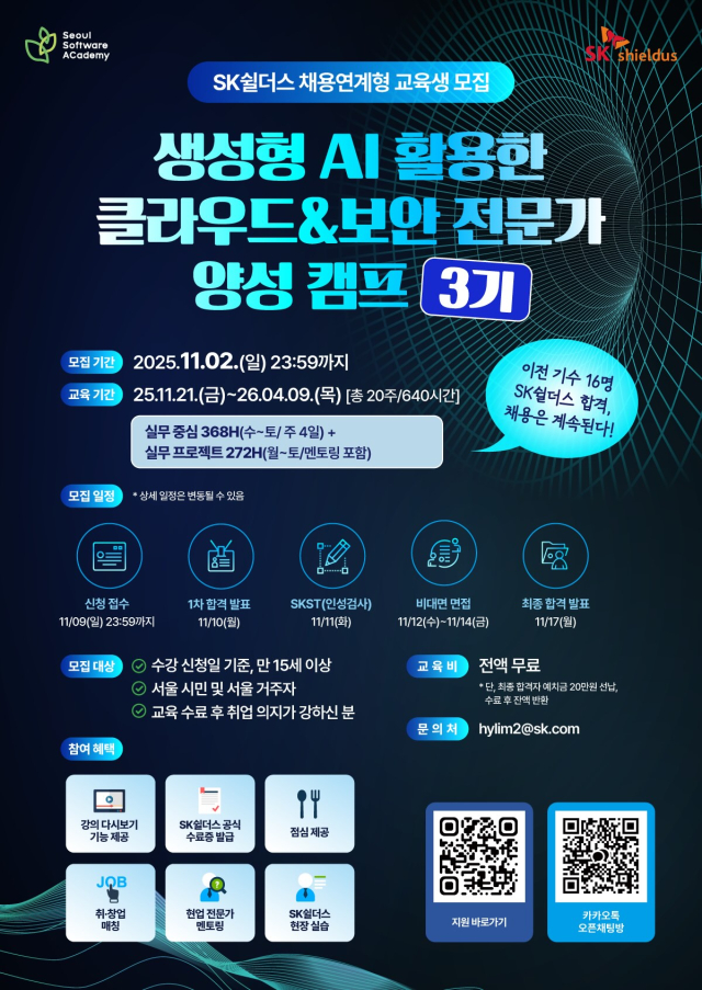 이전 기수 16명 SK쉴더스 합격! 채용은 계속된다구!