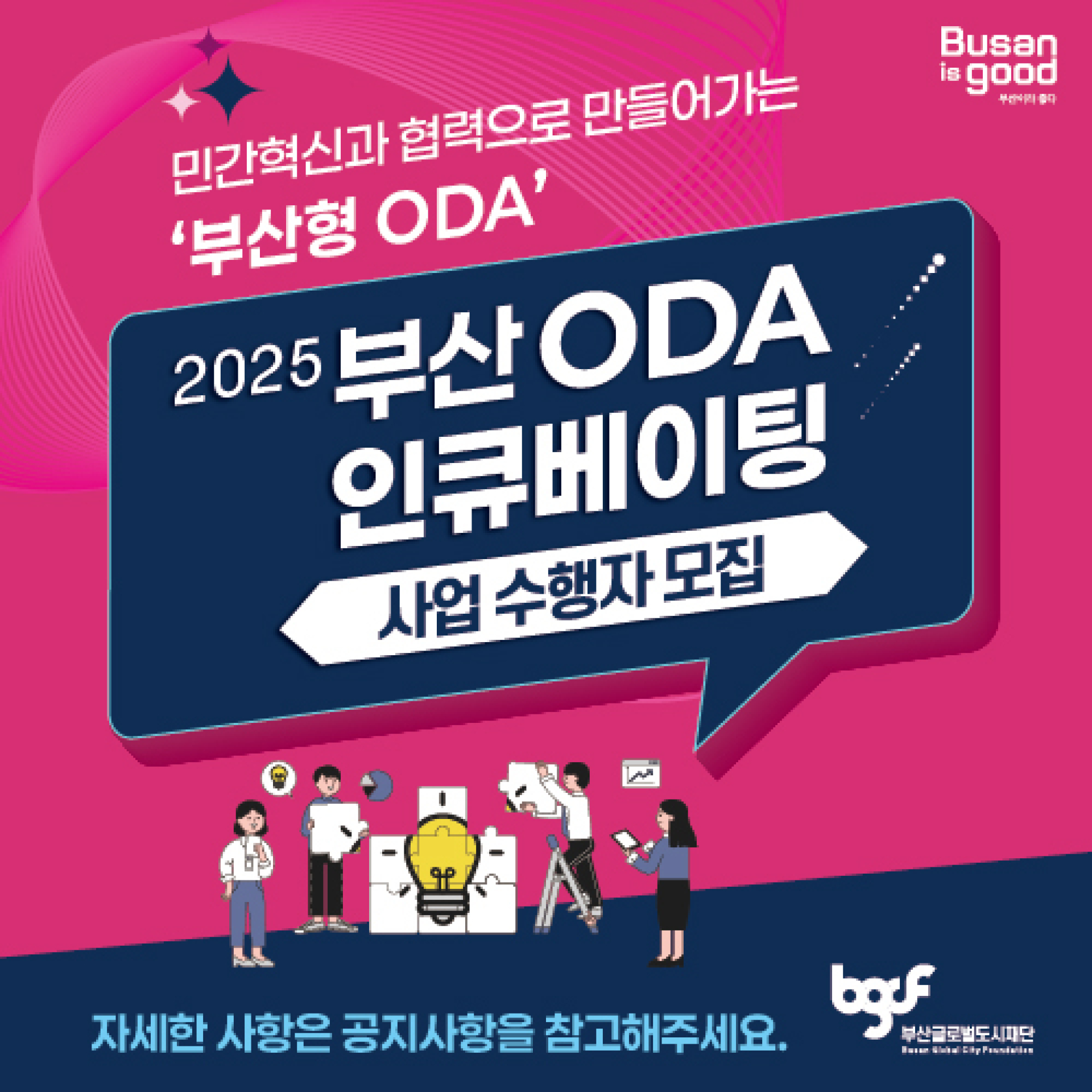 이에 「2025 부산 ODA 인큐베이팅」 사업에 참여할 역량 있는 사업 수행자를 모집하오니,
