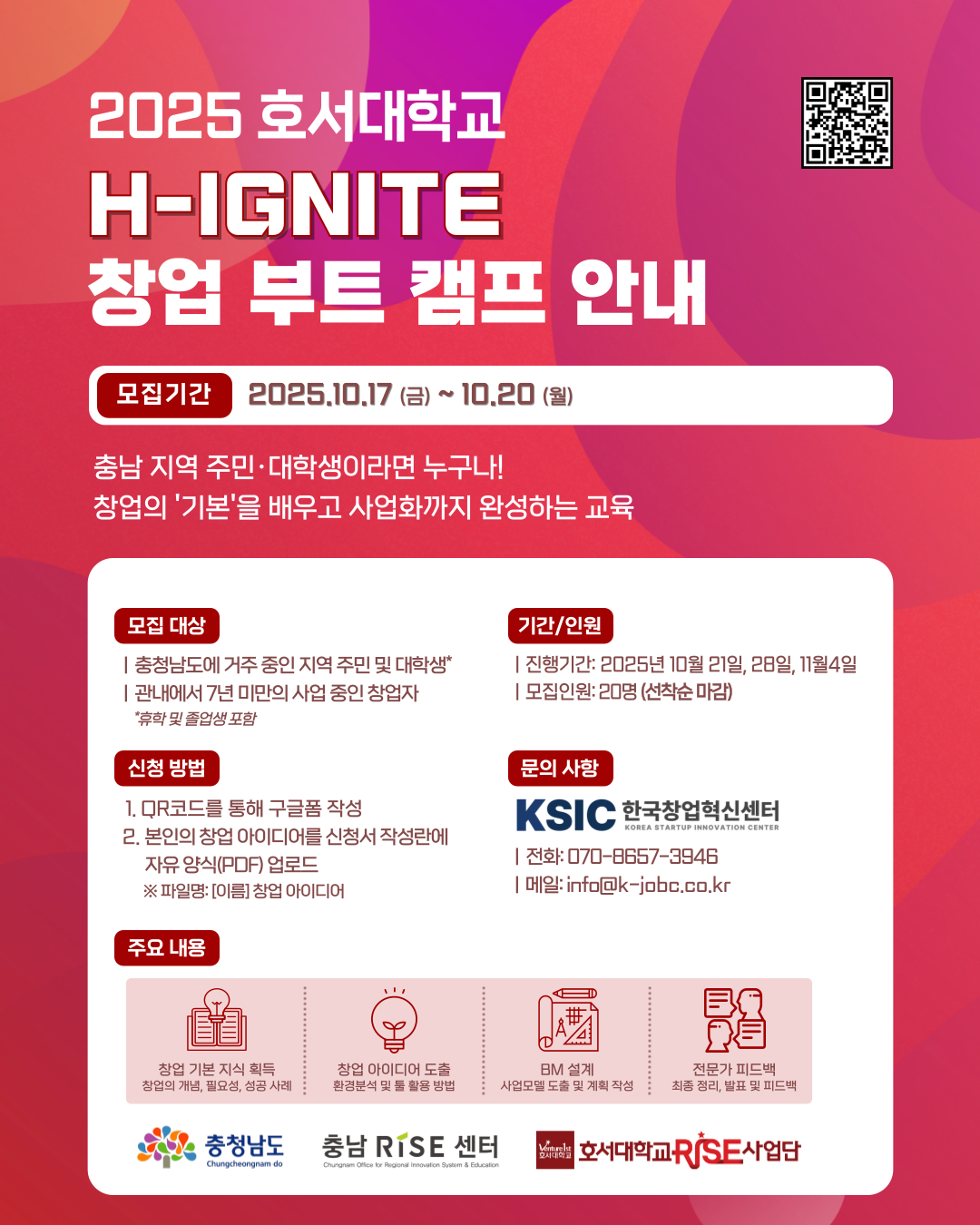 [호서대학교] (~10/20) 3일 만에 창업가로 점화! H-IGNITE 창업 부트 캠프 참여자 모집