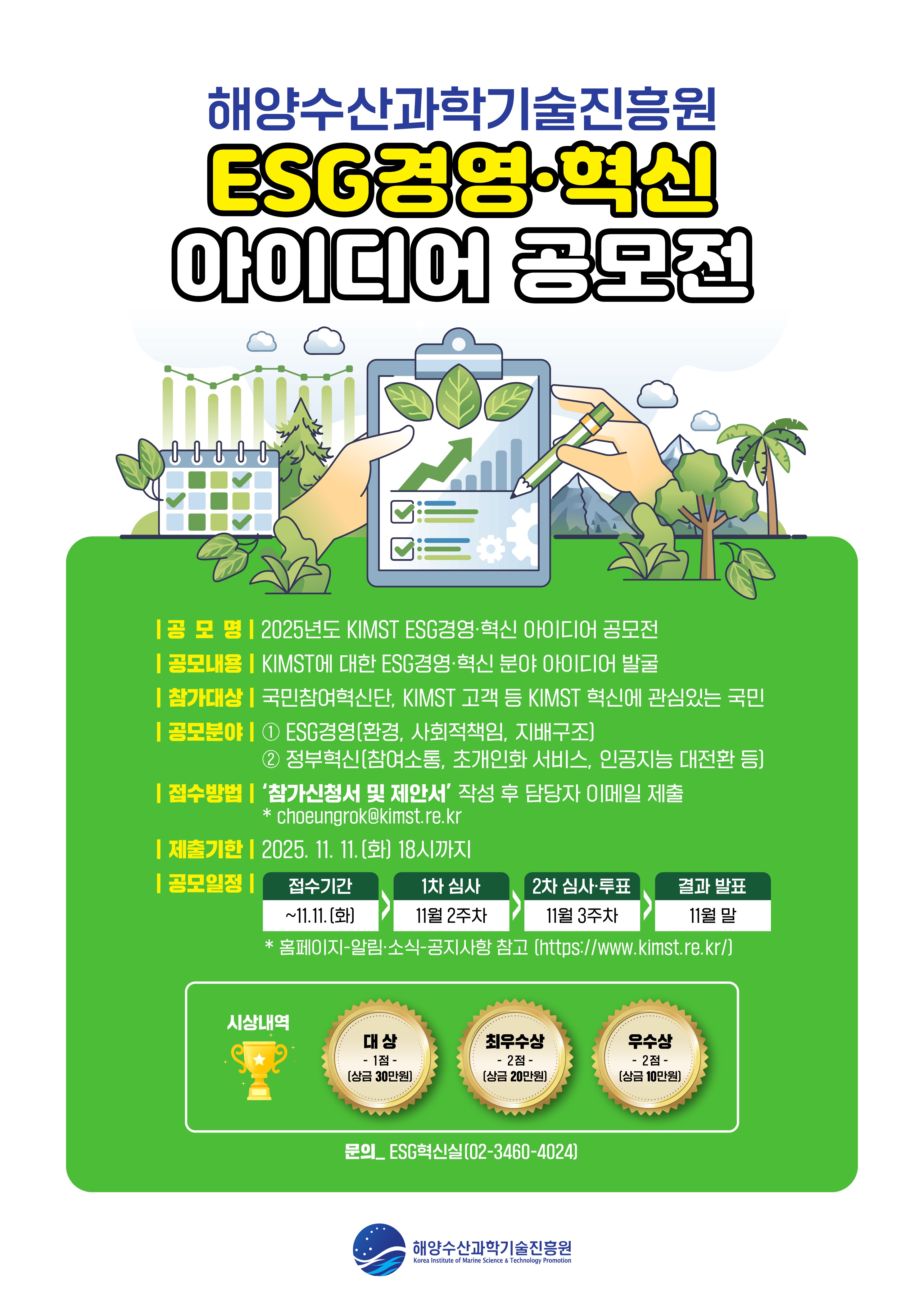 2025년도 KIMST ESG 경영·혁신 아이디어 공모전 연장 안내