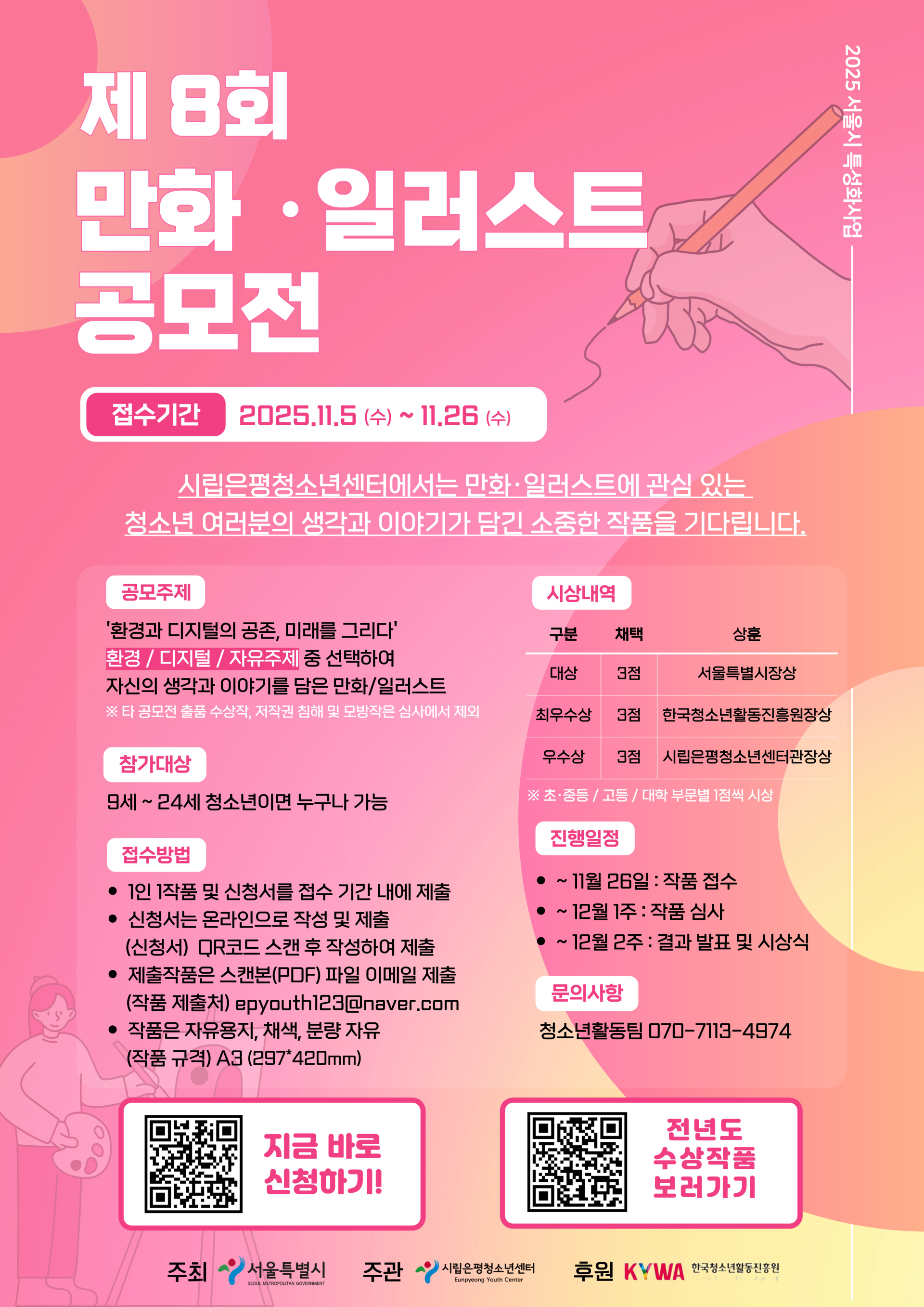 - 만화/일러스트에 관심있는 청소년 여러분의 생각과 이야기가 담긴 소중한 작품을 기다립니다.