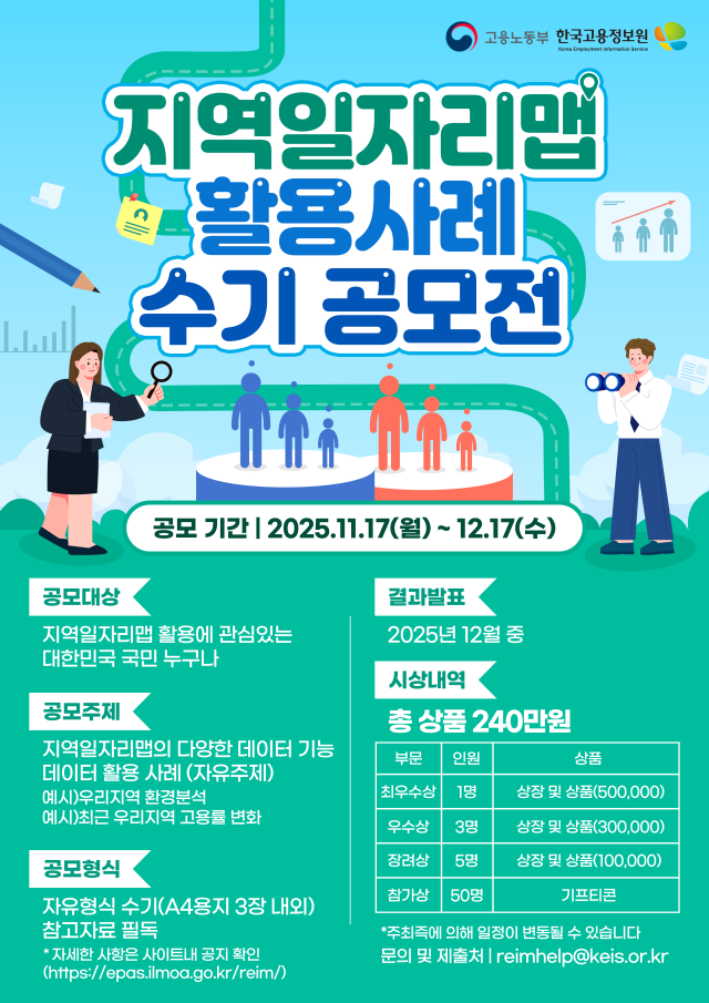 - 수상작은 한국고용정보원의 공식 홍보 채널(웹사이트, SNS, 카드뉴스, 사례집 등)을 통해