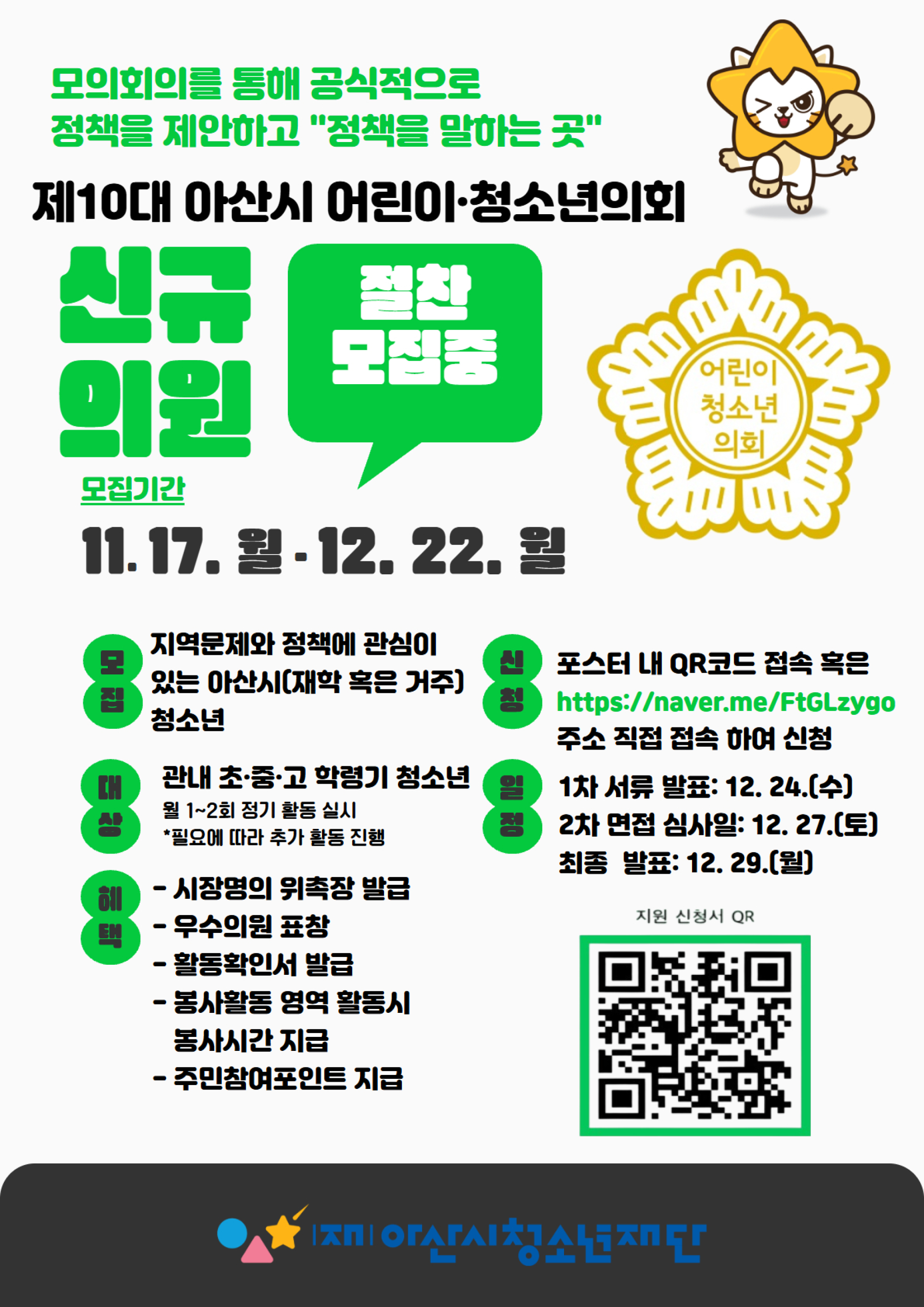 아산시어린이청소년의회 어린이청소년의원모집