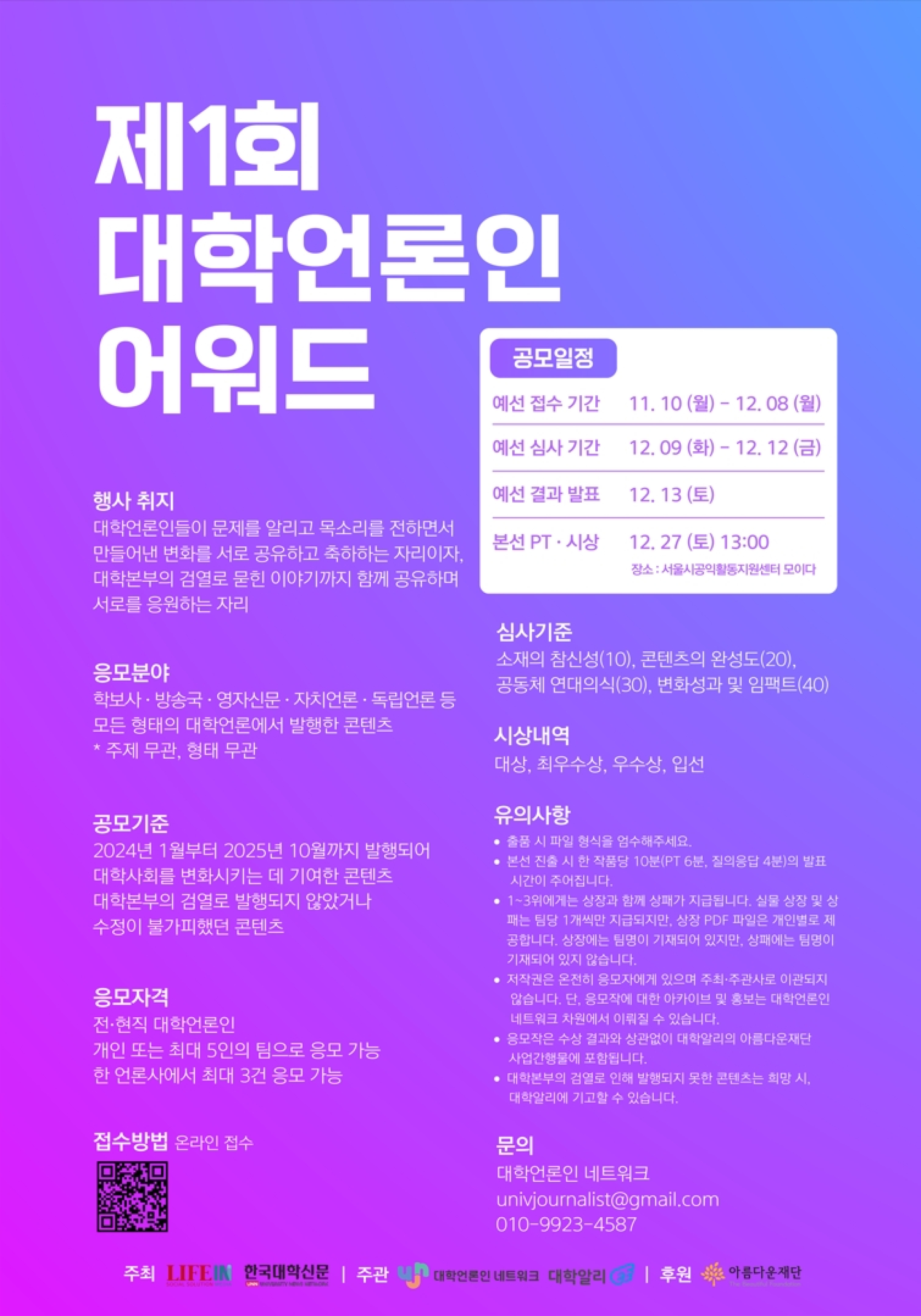 | 주관 | 대학언론인 네트워크, 대학알리 |