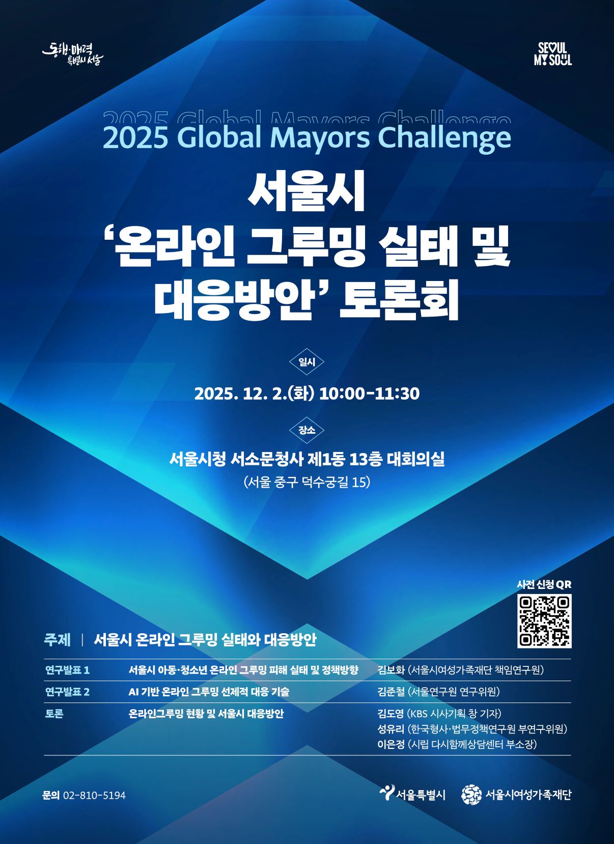 서울시 '온라인 그루밍 실태 및 대응방안' 토론회 (참가신청: 12/1 까지)