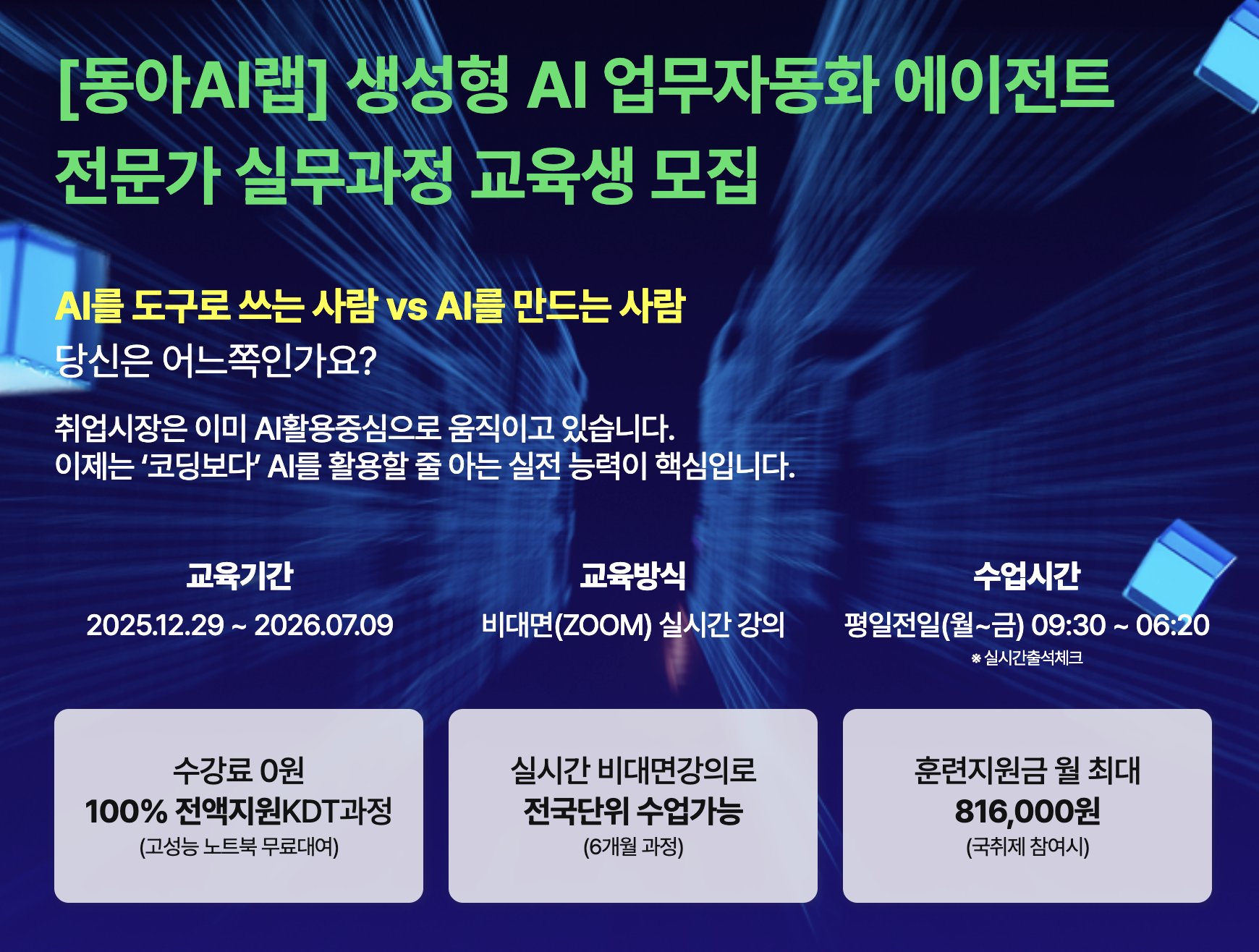 [전액무료]생성형 AI 업무자동화 에이전트 전문가 실무과정 교육생 모집