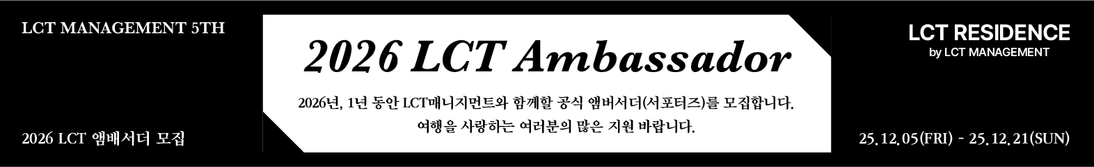 - 2026년, 1년 동안 LCT매니지먼트와 함께할 공식 앰버서더(서포터즈)를 모집합니다.
