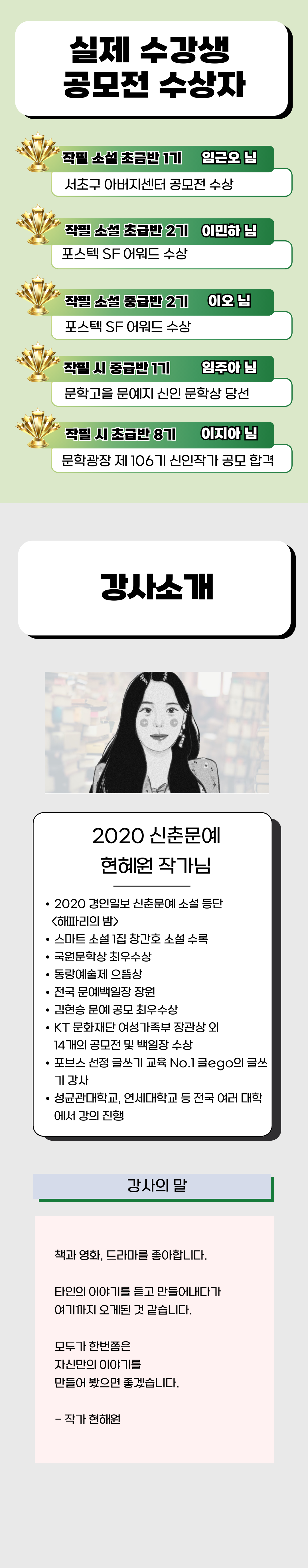 동화나 시 쓰는 법을 배우고 싶으신 분들을 위한 전문 강의도 준비되어 있습니다!