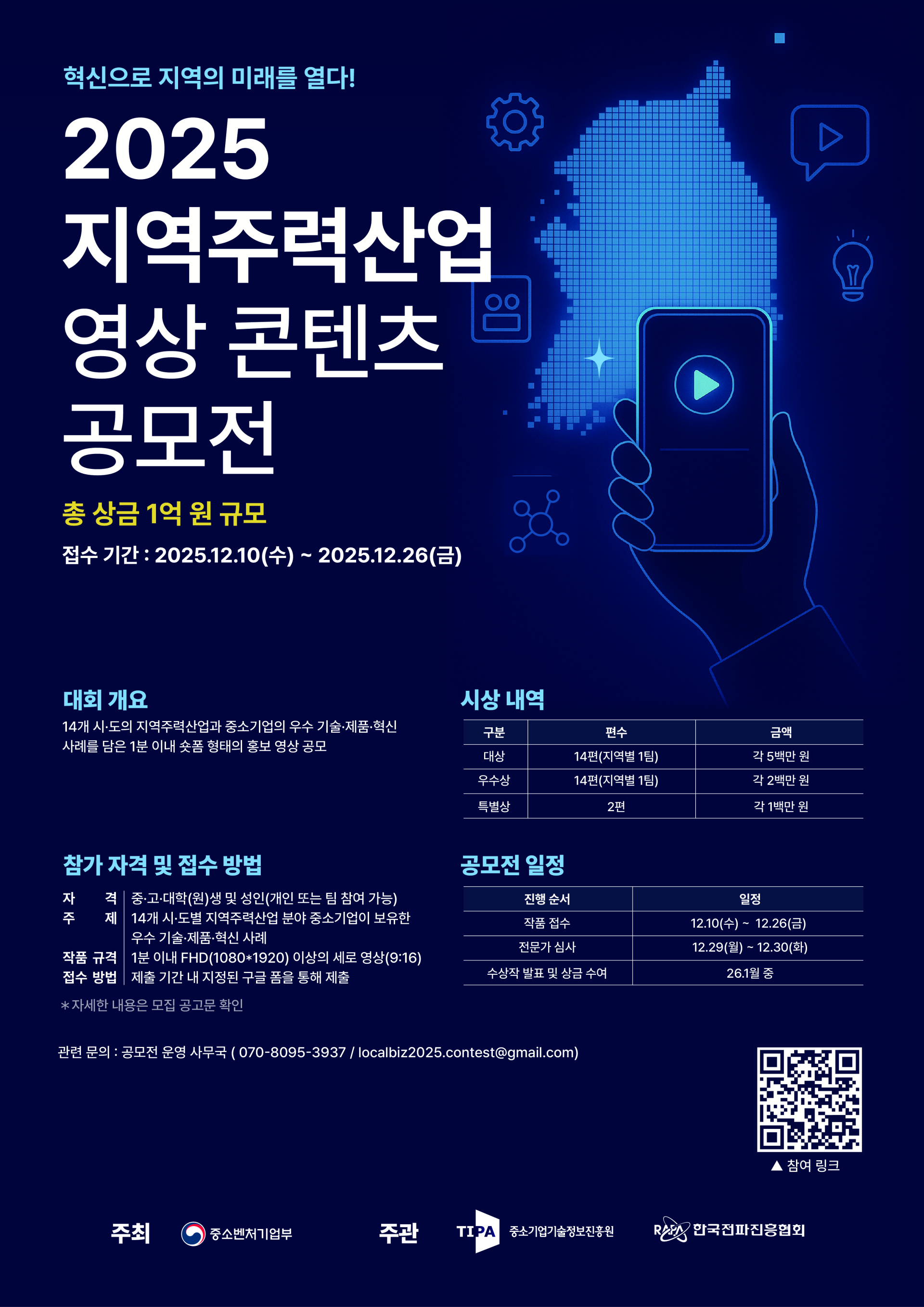 총 상금 1억 원 규모의 <2025 지역주력산업 영상 콘텐츠 공모전>