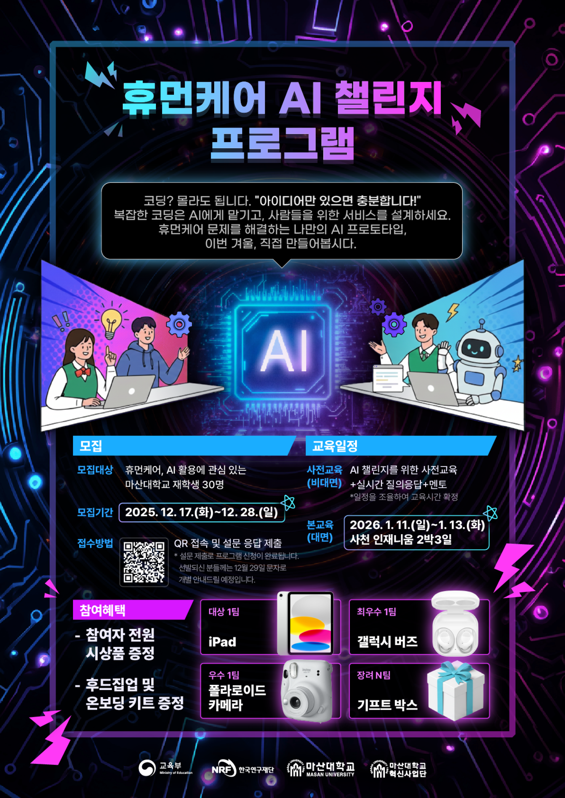 - 휴먼케어, AI활용에 관심있는 마산대학교 재학생 30명