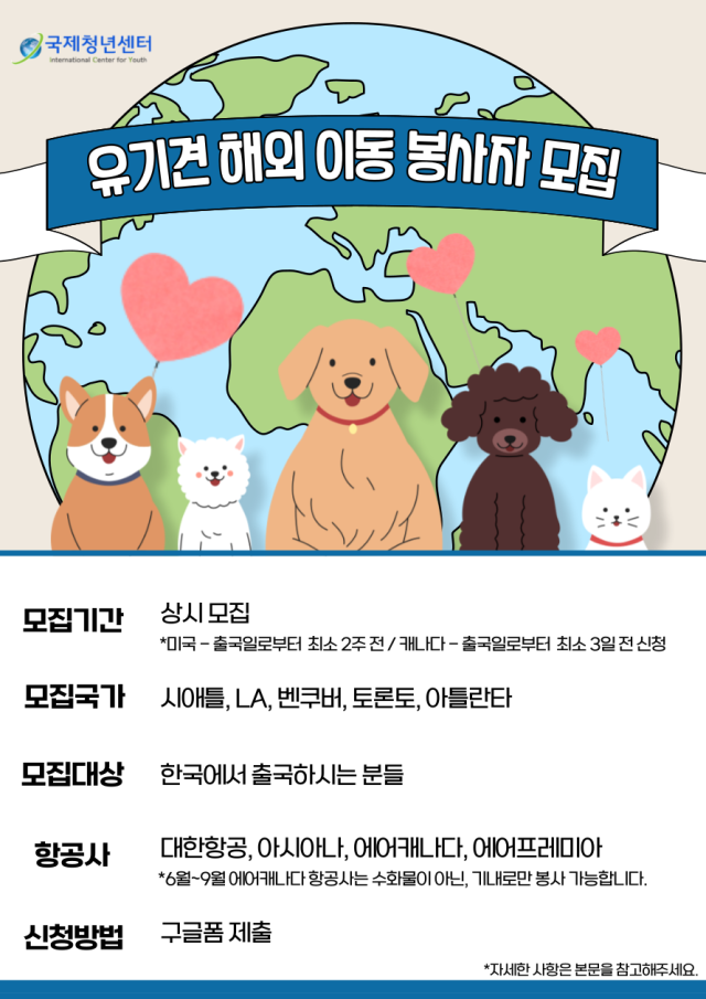 국제청년센터와 함께 유기견 해외 이동 봉사를 하실 봉사자를 모집합니다!