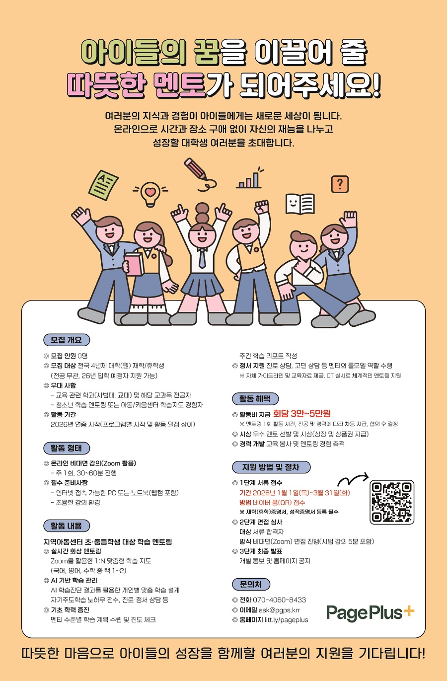 아이들과 소통하며 함께 성장할 대학생 여러분의 적극적인 지원을 기대합니다!