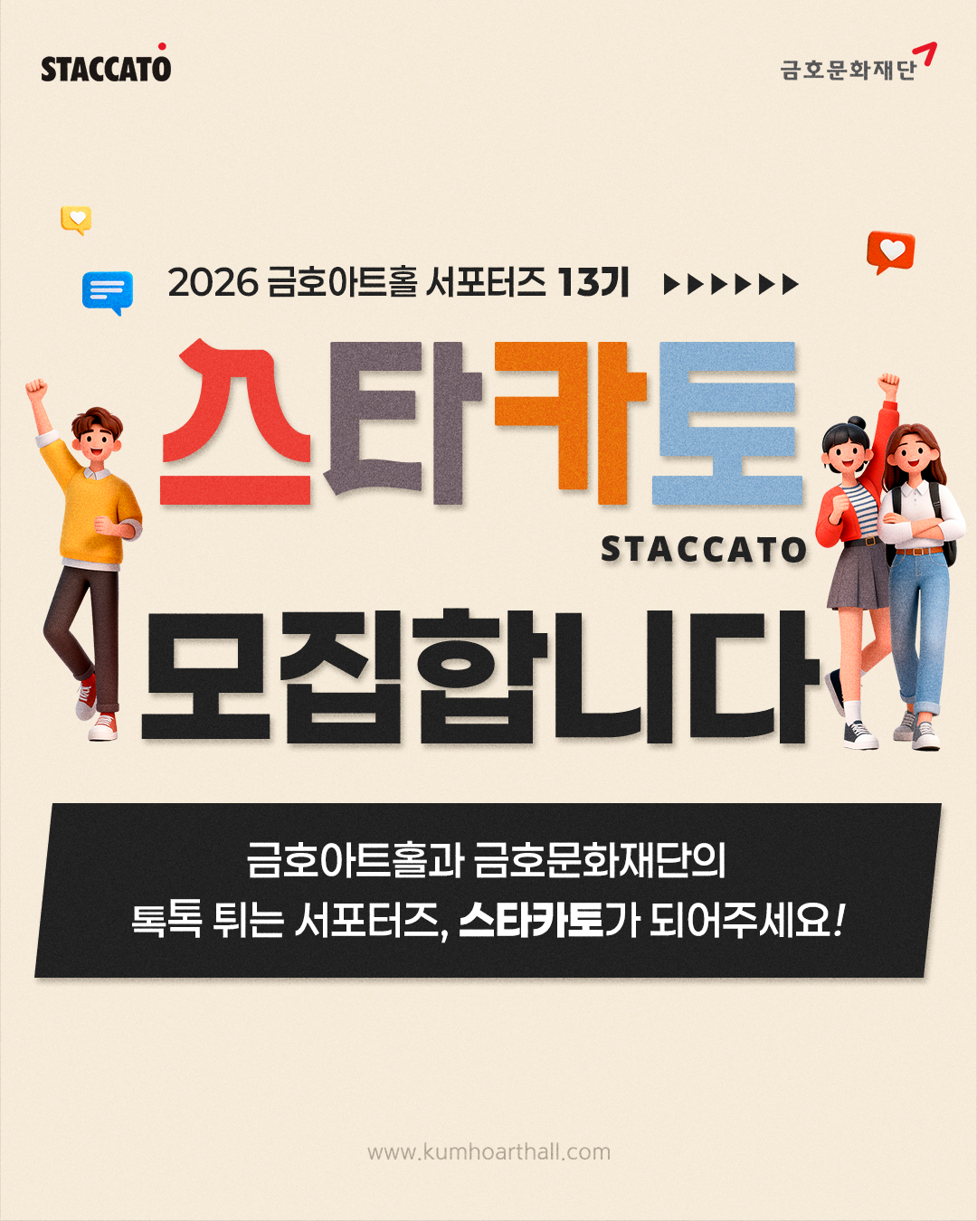 [금호문화재단] 금호아트홀 서포터즈 <스타카토> 13기 모집! (~2026/2/1)