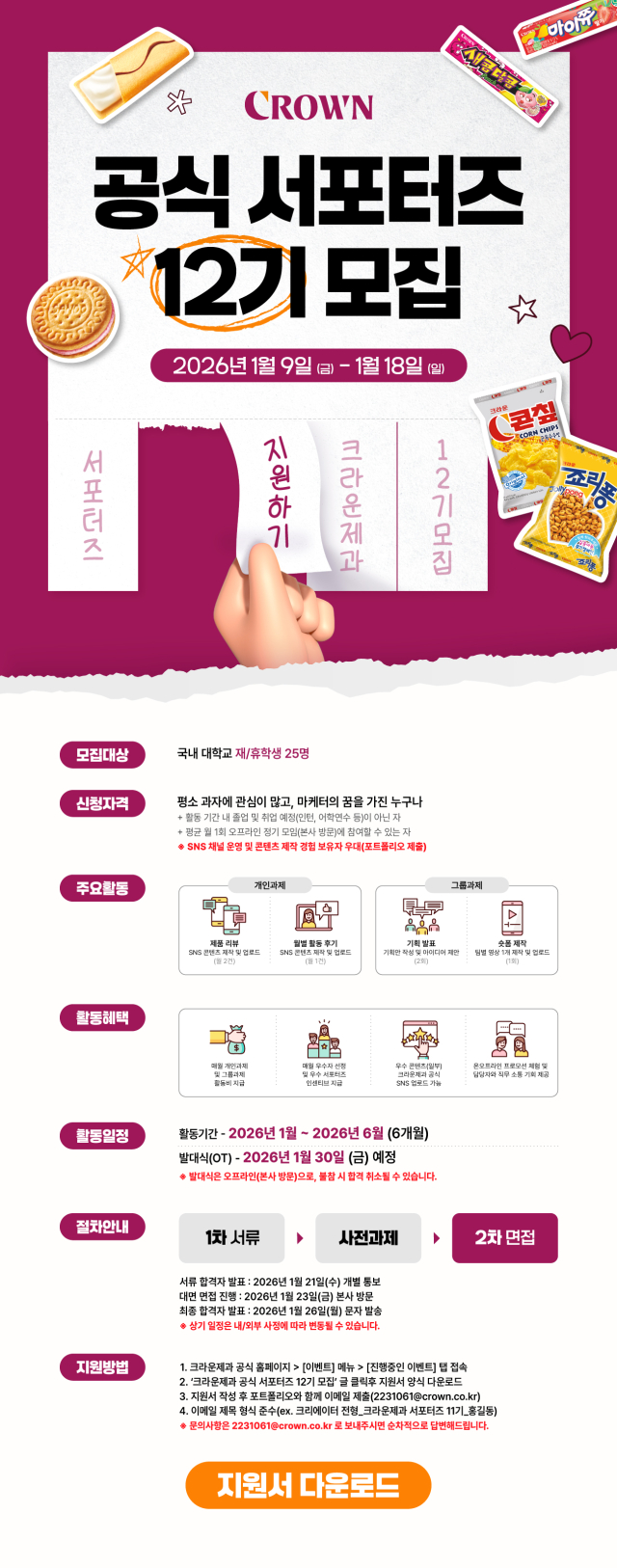 - 크라운제과 서포터즈 12기 모집