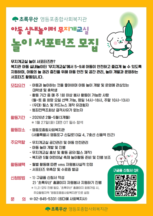 초록우산 영등포종합사회복지관 무지개교실 놀이 서포터즈 모집