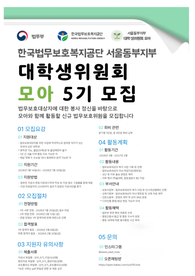 한국법무보호복지공단 서울동부지부 대학생위원회 모아 5기 모집
