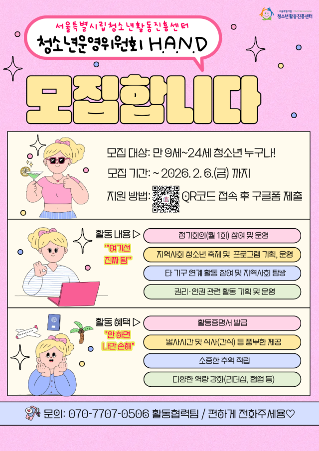 서울특별시립청소년활동진흥센터 '청소년운영위원회 H.A.N.D' 모집