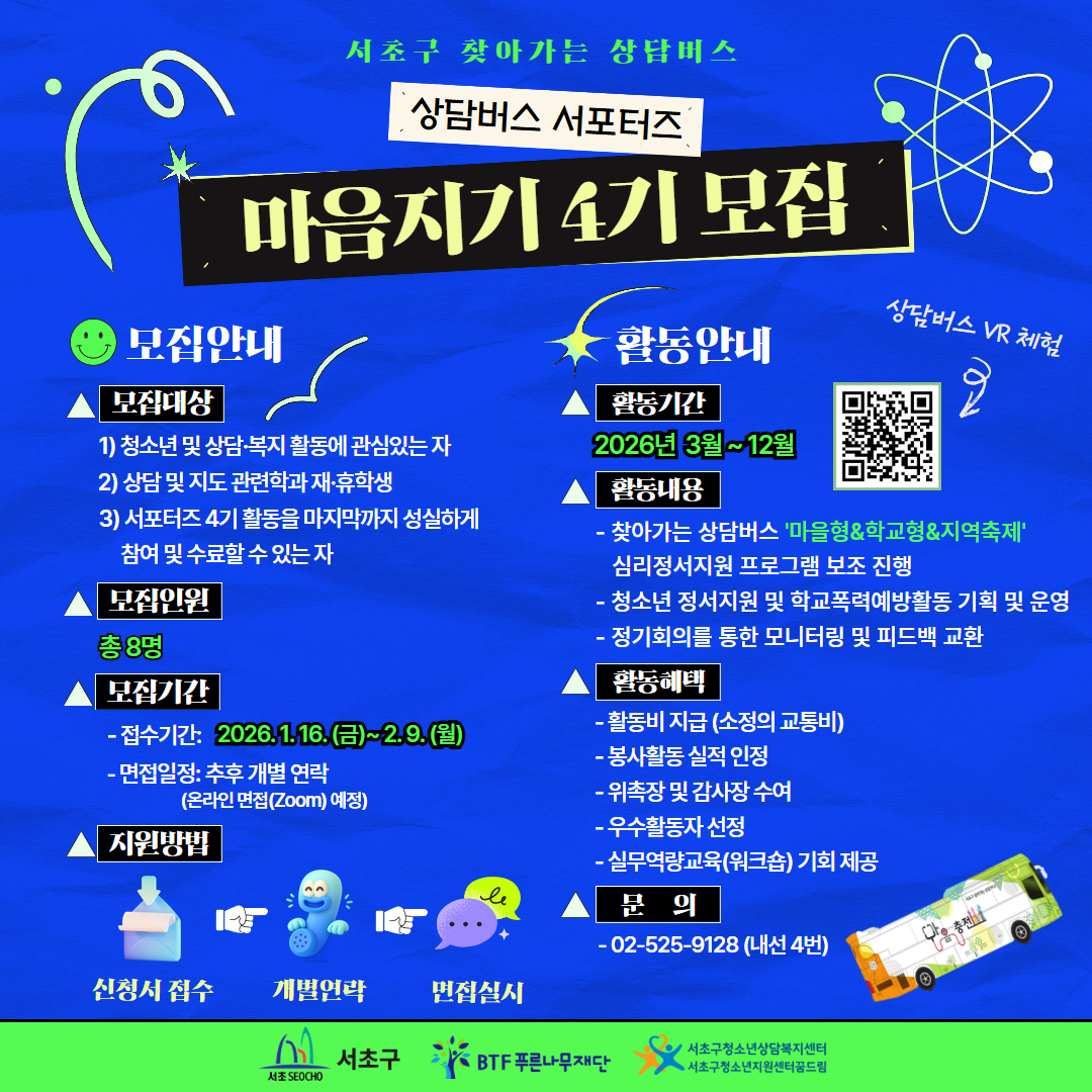 서초구청소년상담복지센터 상담버스 서포터즈 4기 모집