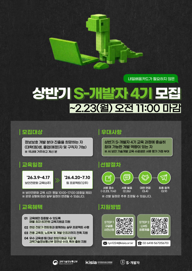 - 전용 교육장, 노트북, 테스트베드 및 개발 인프라 지원
