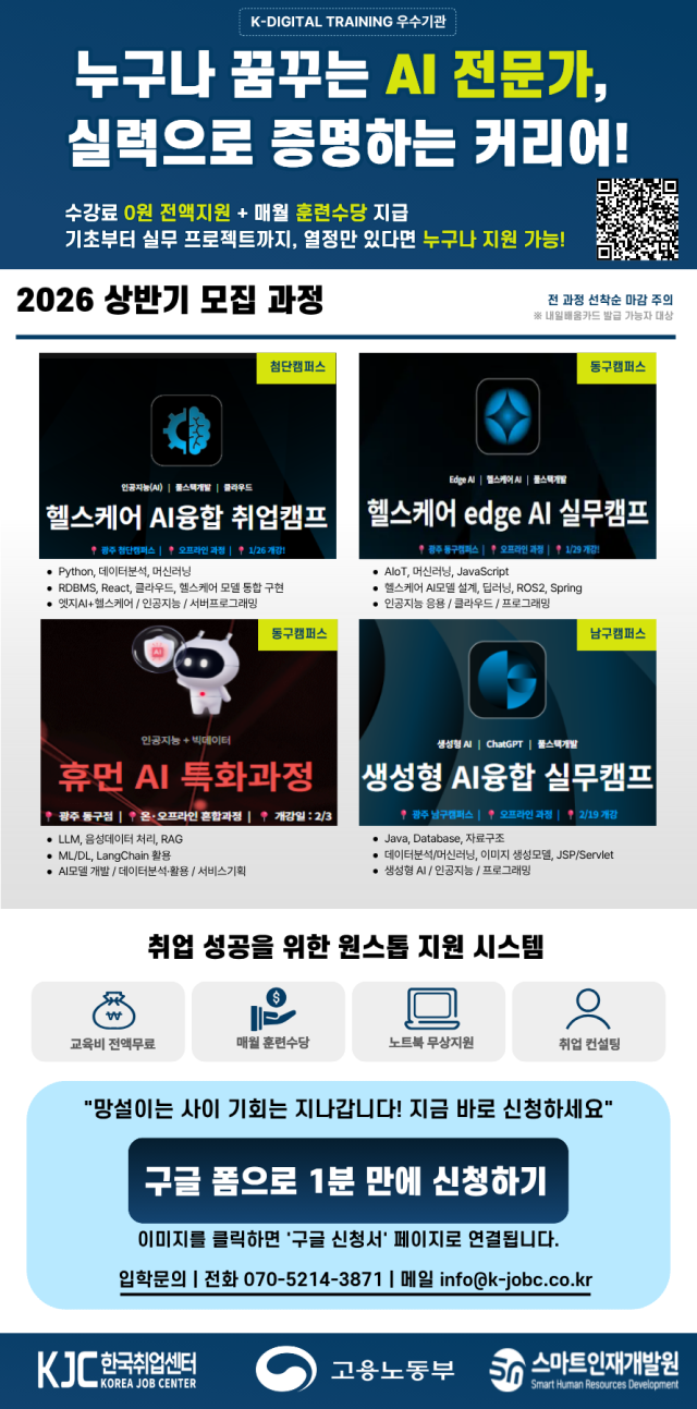 [스펙업 + 취업 연계 + 실무진 특강] IT 취업의 지름길! 캠퍼스별 AI 융합 SW 및 풀스택 개발자 과정