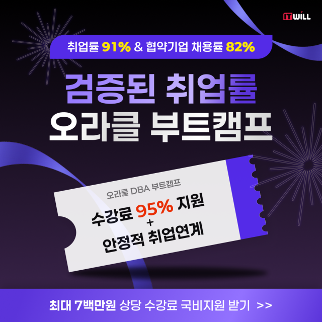 아이티윌은 국내에서 유일하게 오라클 데이터베이스관리자를 양성하는 전문 교육기관입니다.