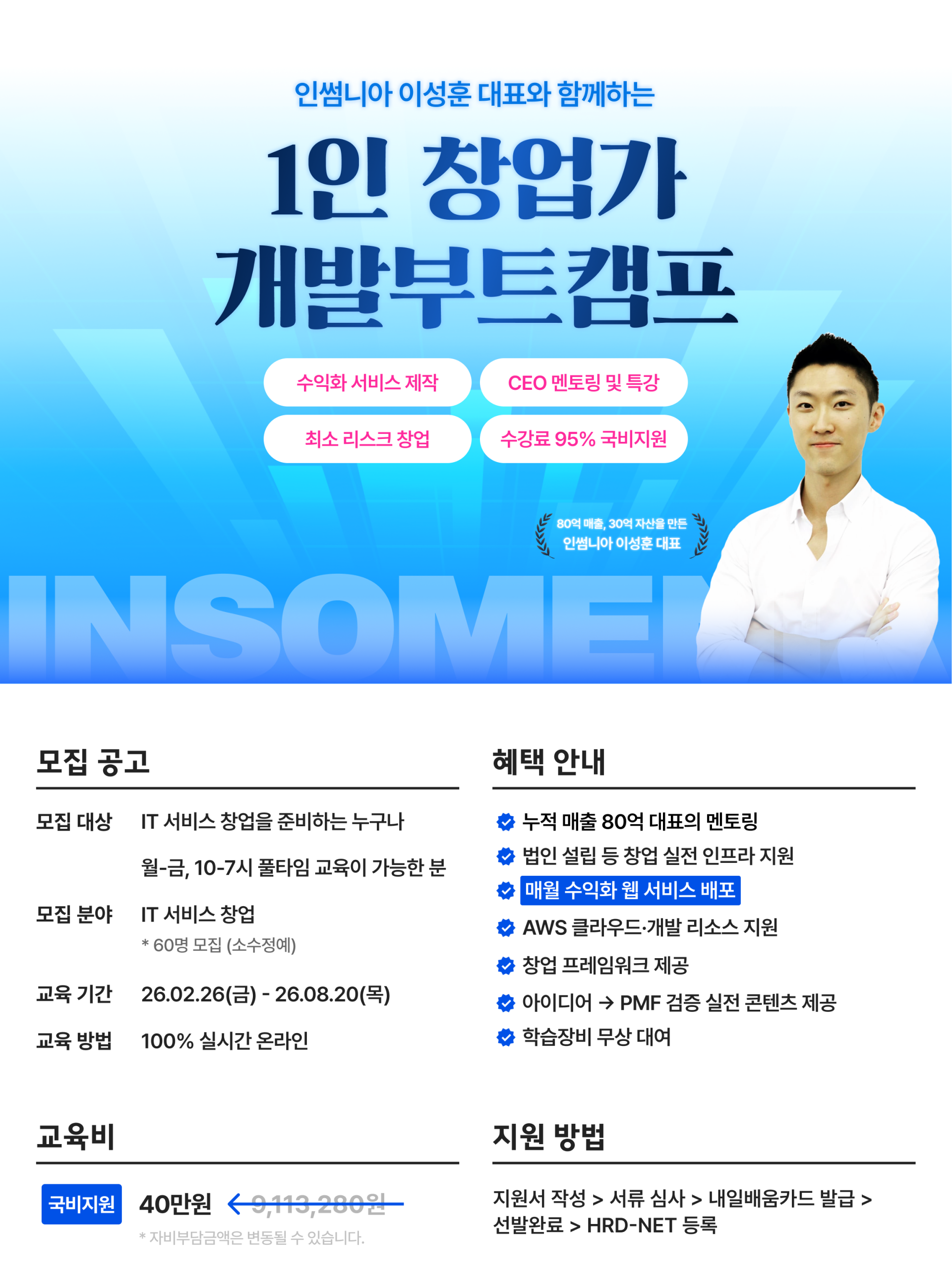 [국비지원교육] 혼자서 서비스 만들고 수익화까지, <풀스택 1인 창업 개발 부트캠프> 4기 모집!!