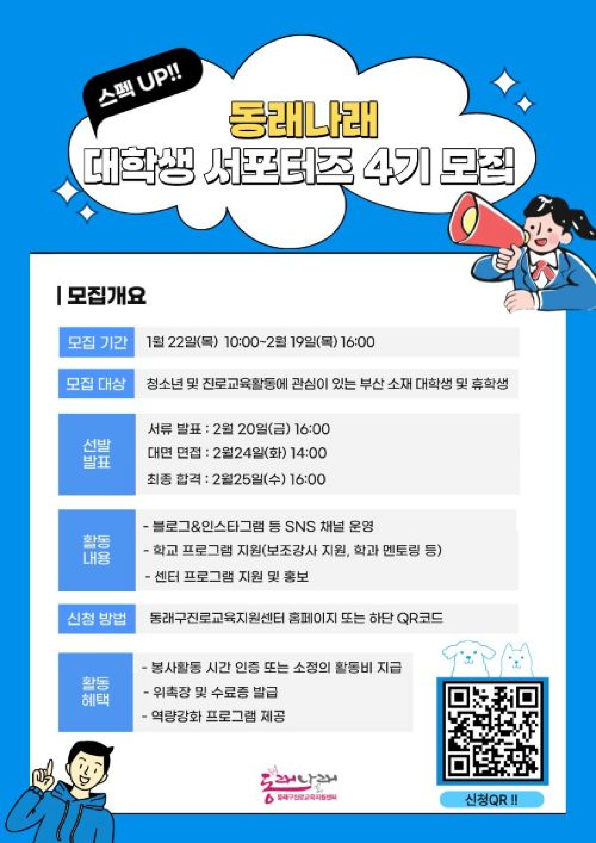 - 동래구진로교육지원센터에서 2026 동래나래 대학생 서포터즈 4기를 모집합니다!