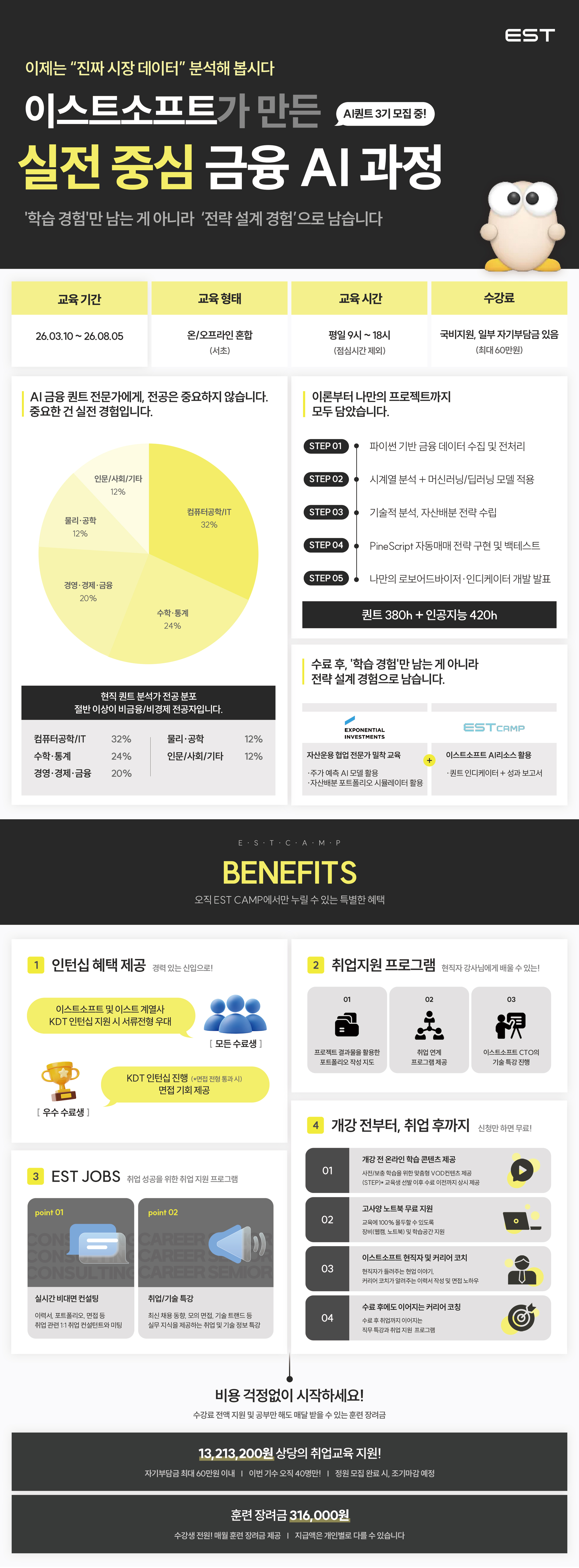 - 금융 데이터와 AI 알고리즘을 활용해 현업에서 바로 적용 가능한 스킬 확보.