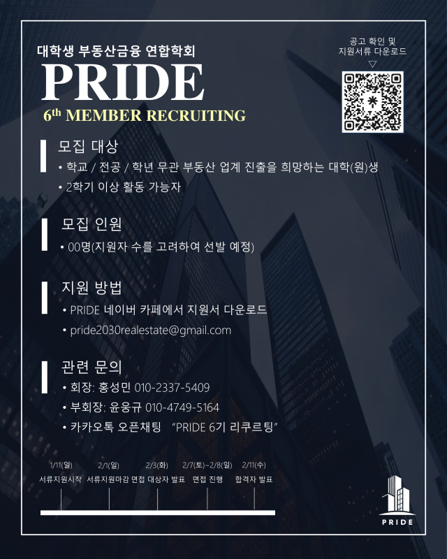 대학생 부동산금융 연합학회 PRIDE 6기 신입부원 모집