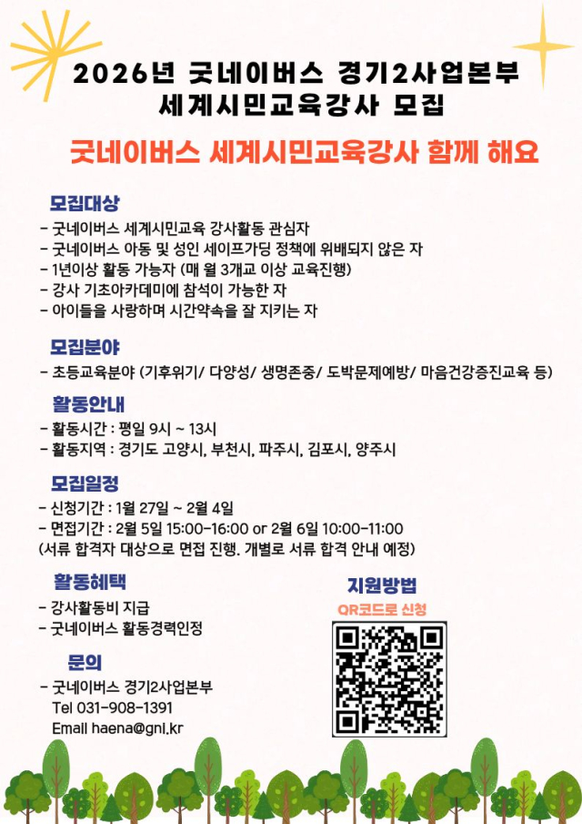 2026년 굿네이버스 경기2사업본부 세계시민교육강사 모집