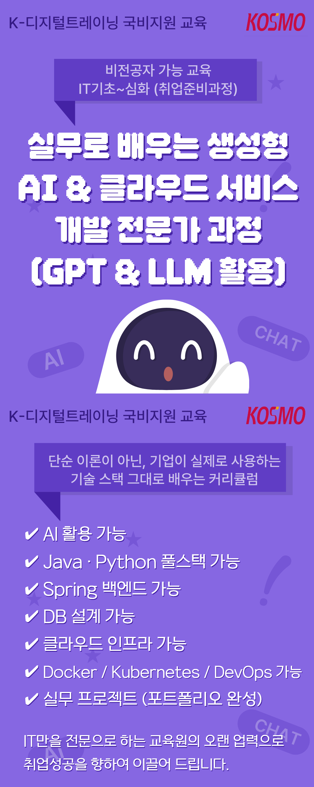 홈페이지 : https://www.ikosmo.co.kr (한국소프트웨어인재개발원)