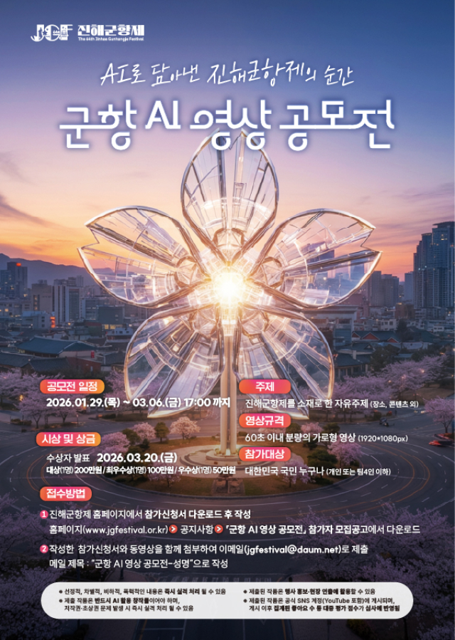 * 접수 이메일 : jgfestival@daum.net / 메일 제목 : [군항 AI 영상 공모전 - 성명]
