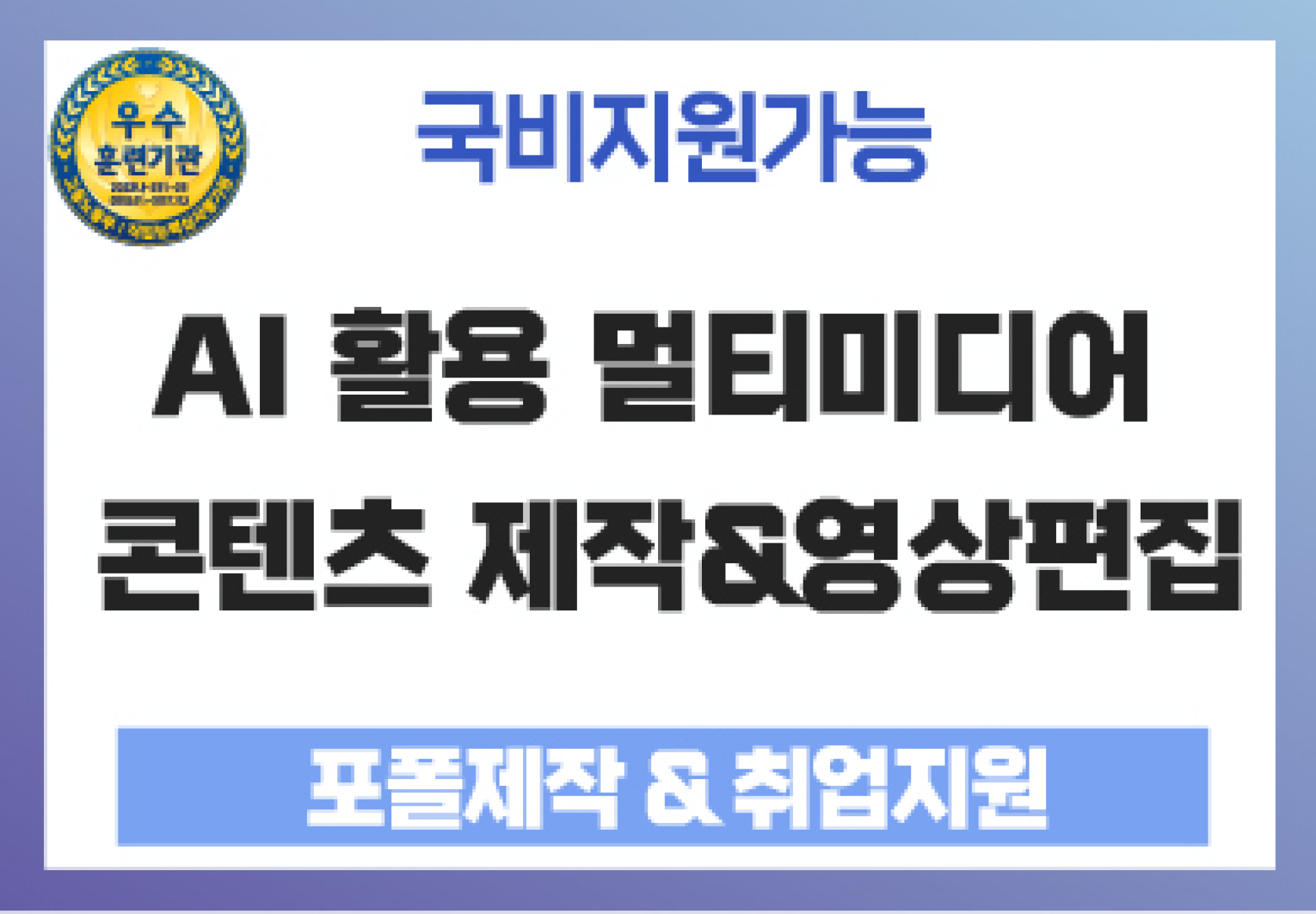 [국비지원]『기업 맞춤형 국기』AI 활용 멀티미디어 콘텐츠 제작&영상편집 실무과정